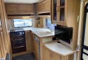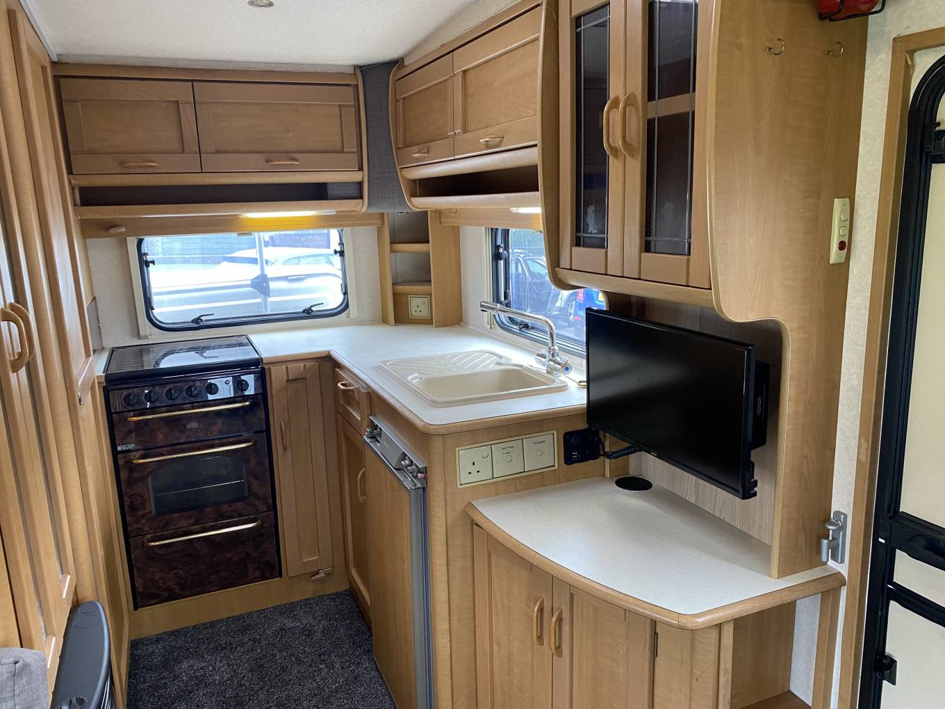 oven and grill, 3 way fridge, sink with drainer and mixer tap. In the rear