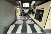 Both the driver and the passenger seats swivel to face a comfortable lounge which comes ready with a clip on table for meal times and socialising. For cooking and washing, two gas hobs sit in the kitchenette, coupled with a sink with water pump and a sizeable fridge with freezer. To heat up the van, an Eberspacher diesel heater is present that can be remotely controlled using an app.