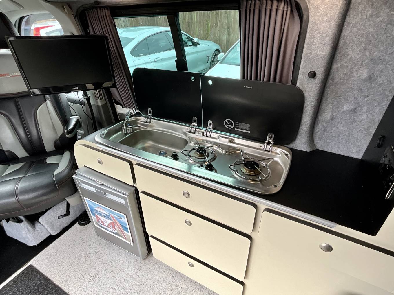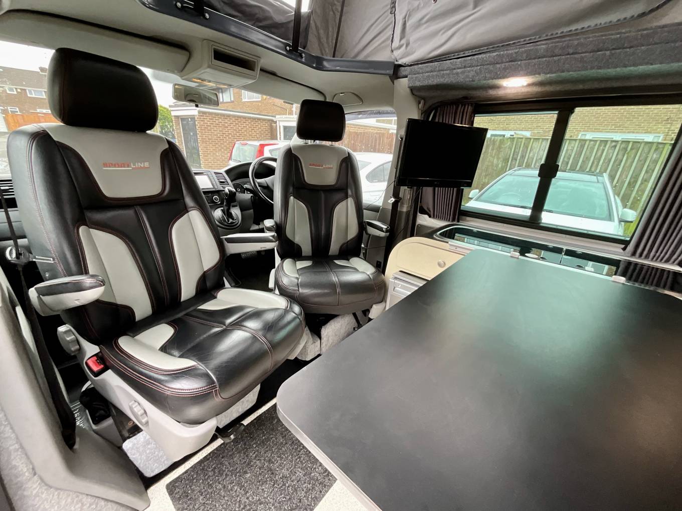 Professionally converted by Camper_versions, this campervan comes with the ever sought after DSG automatic gearbox making driving a pleasure. Being the Sportline, the leather seats compliment this vehicles style and look, making it truly unique in the campervan world and would be the pride of any owner.
