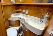 the electric flush toilet, vanity handwash basin and well-appointed storage.