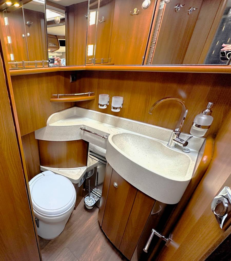 shower, washroom and bedroom from the front of the motorhome, providing a great