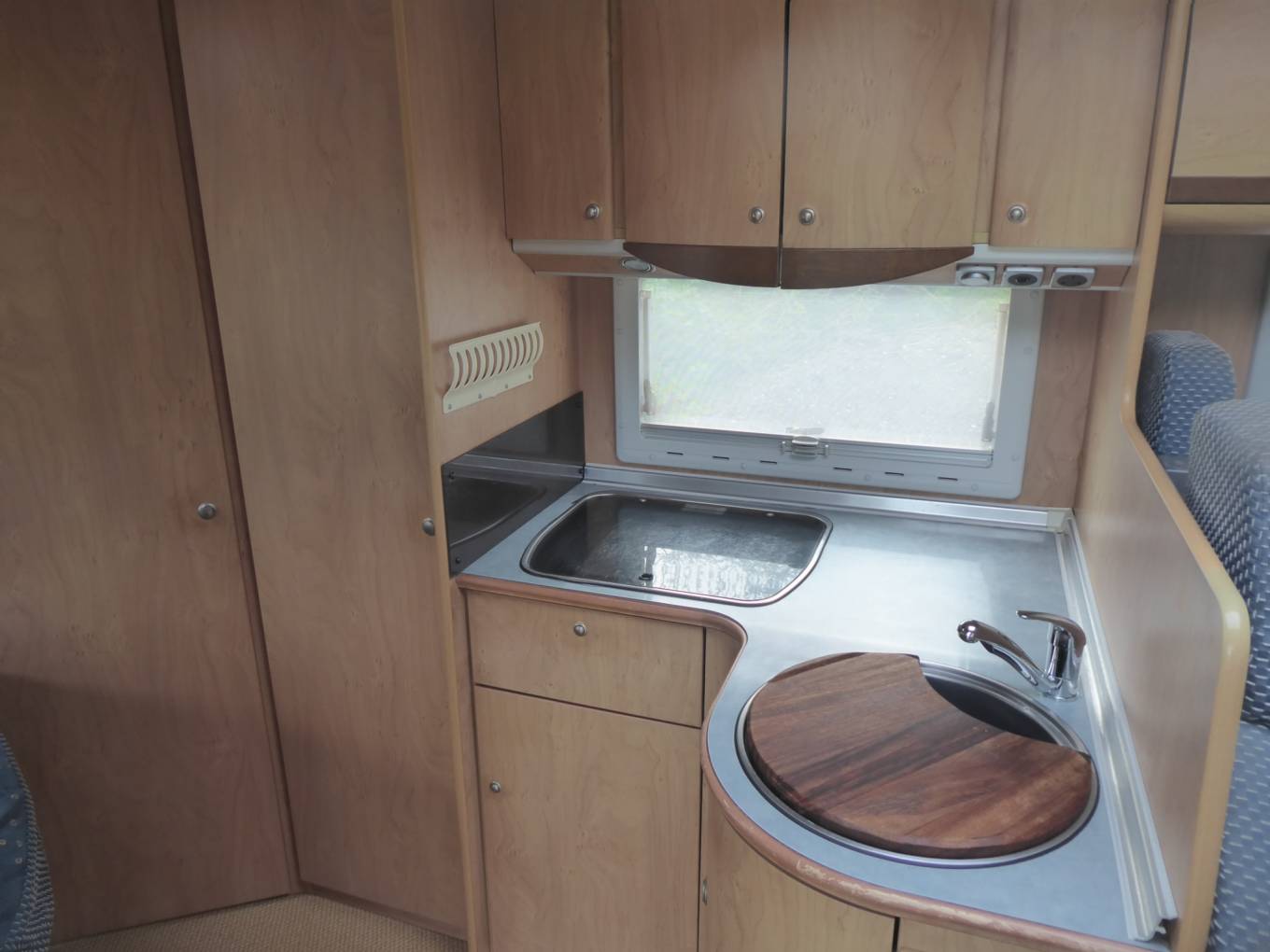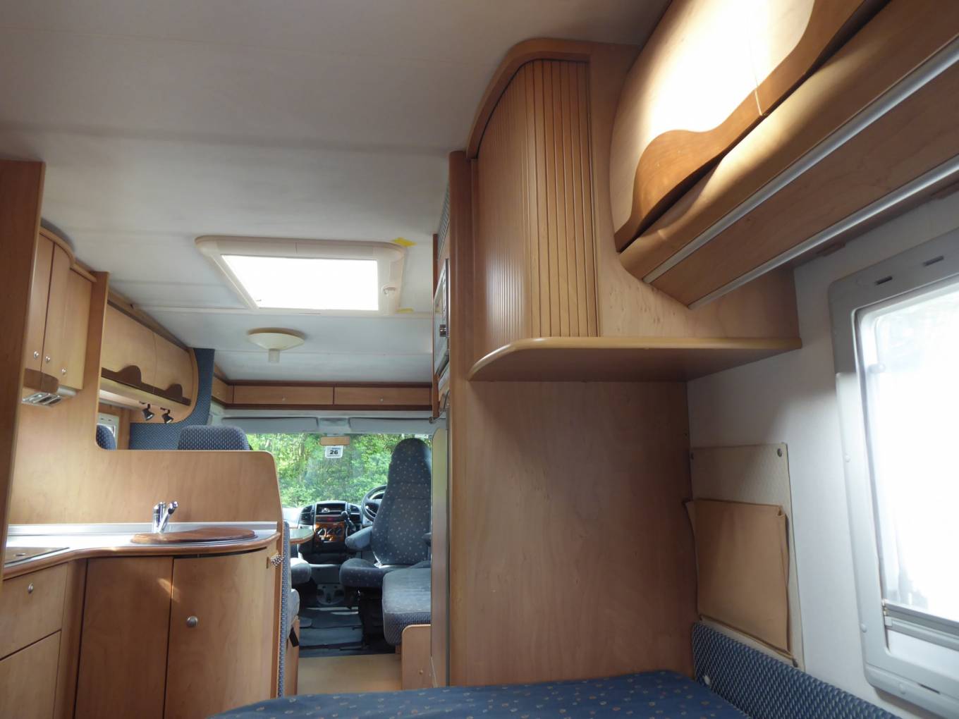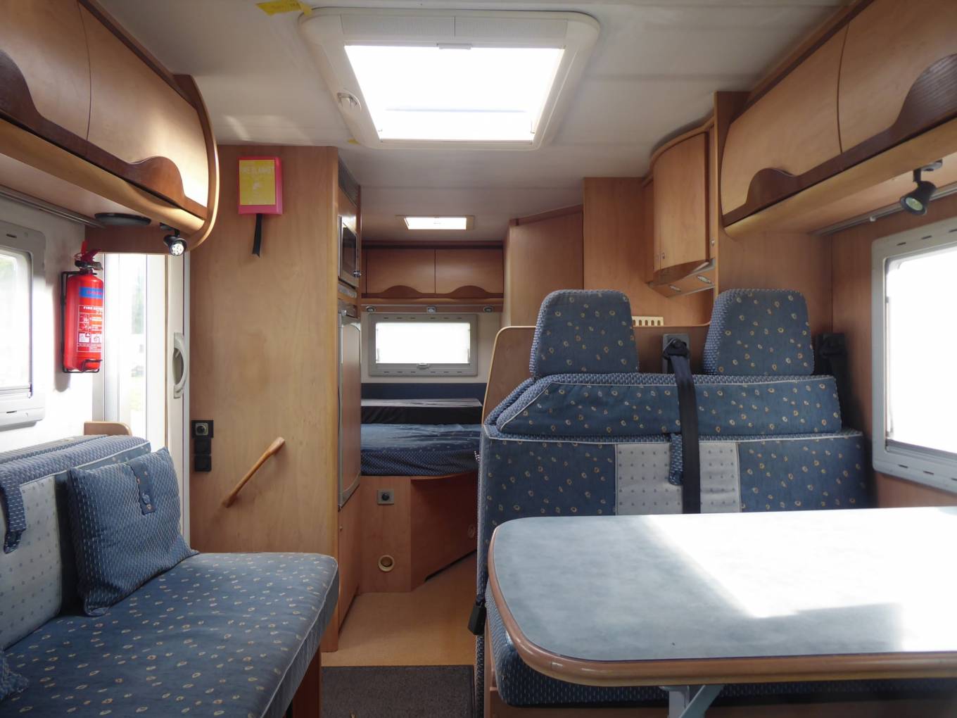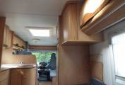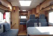 The forward habitation layout in this Burstner is comprised of a nearside half dinette (the forward facing seat has two additional seat belts) and an opposing side sofa. As a leisure/dining area it can be enhanced by the use of the swivel cab seats and extending the table, while at night it readily converts into a double berth.