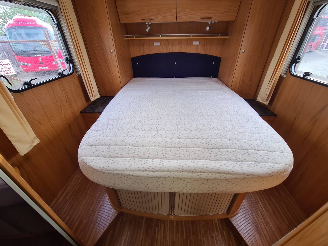 At the rear is the Bedroom with a very comfortable and much sought after, Island Bed. There is lots of storage in here too.