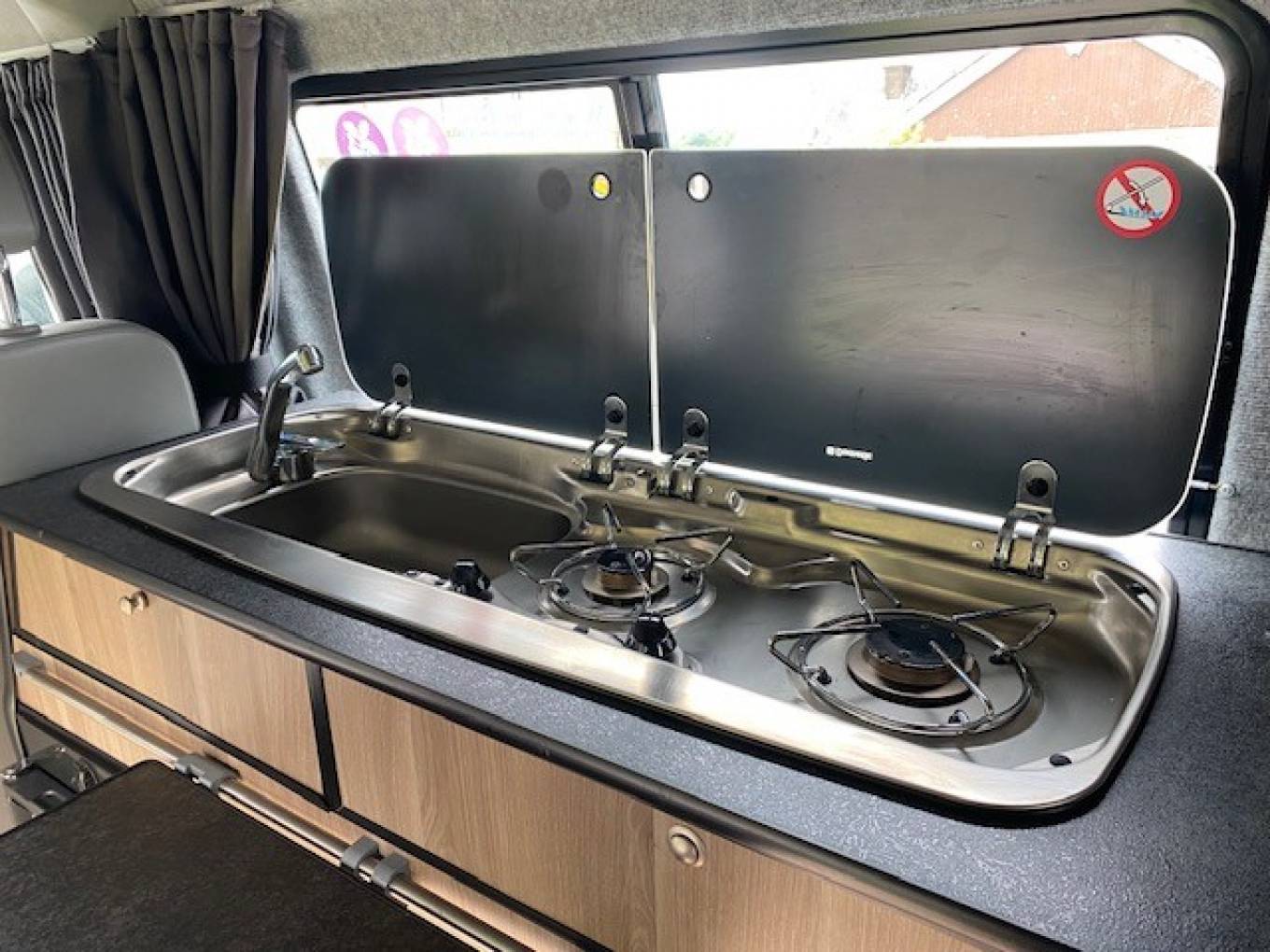 with 2 seatbelts and offside kitchen and small wardrobe.