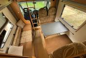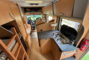 Towards the front of the motorhome, you have the extra-large dinette area! Perfect for lounging in the day, eating in the evening or sleeping at night this versatile area is built up from one forward and one backward facing bench with a foldable table in the middle and a long side bench accompanying them both. The table can be removed completely for more space or folded to make a double bed and the forward and backward facing benches both house and additional 2 belts each.