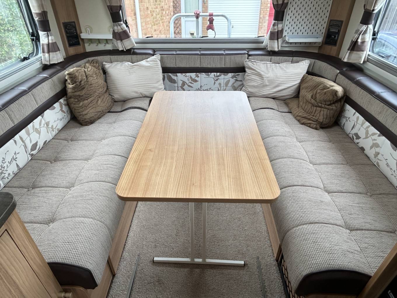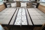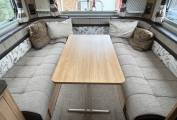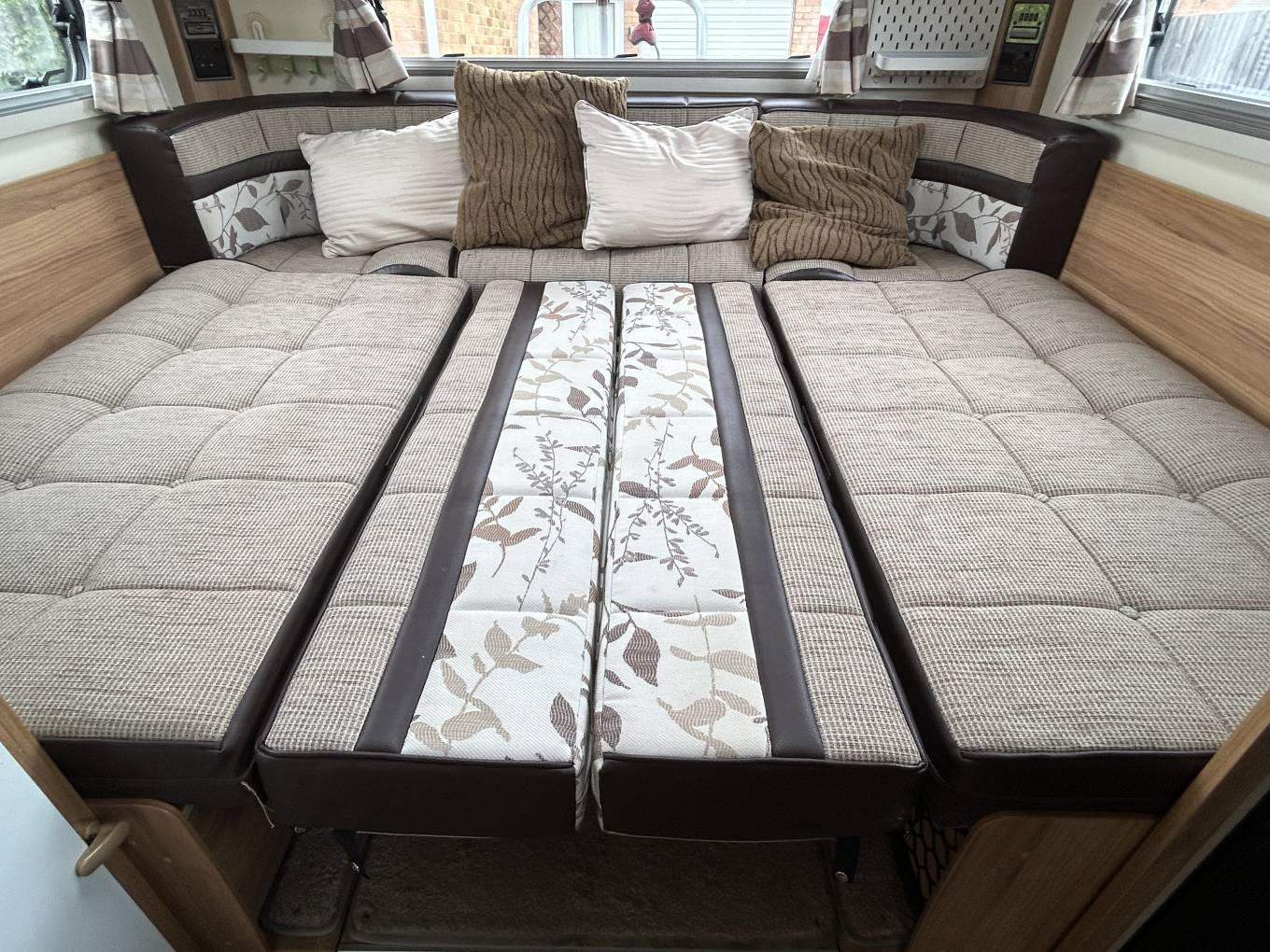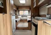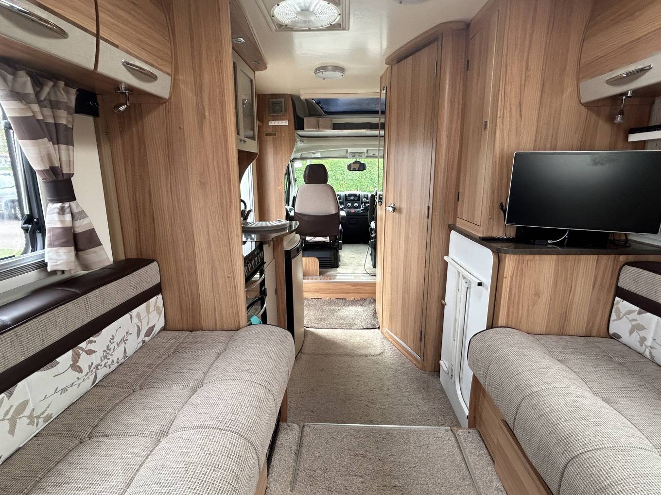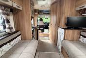 Undoubtedly the highlight of this lovely motorhome is the spacious rear U shape lounge which is a lovely spot to relax in after a day out. The lounge is flooded with light thanks to triple aspect windows and a large skylight. There is a 12/230 volt Avtex TV/DVD if you want to catch up with all your favourite shows. At bedtime the sofas pull together to create a huge bed measuring 86 x 72 inches. If you are not too tall you can also use the sofas as two single beds as these measure 70 x 28 inches.