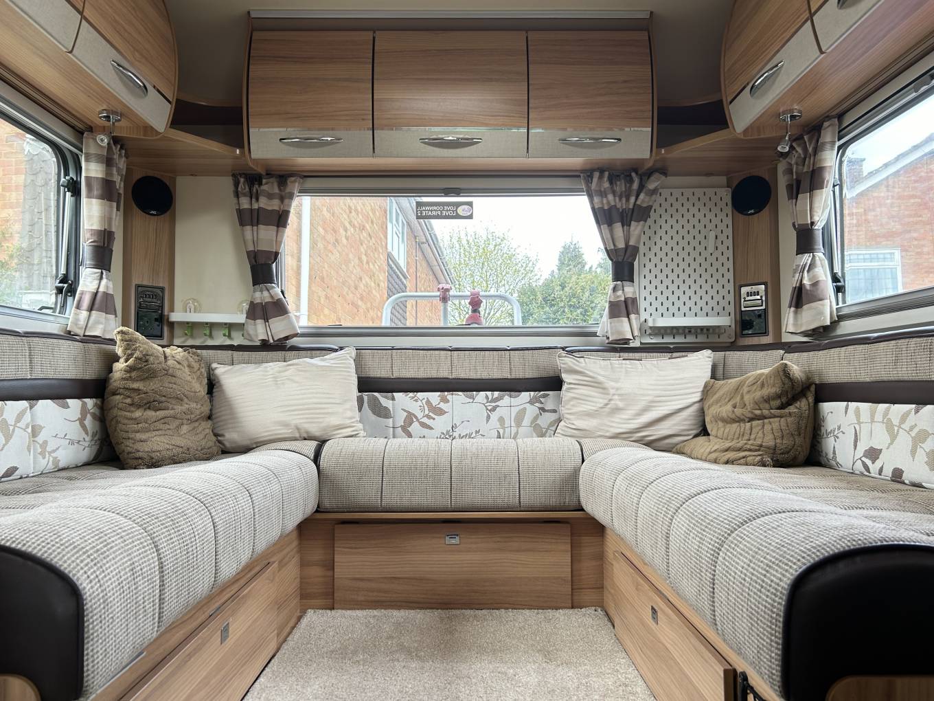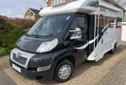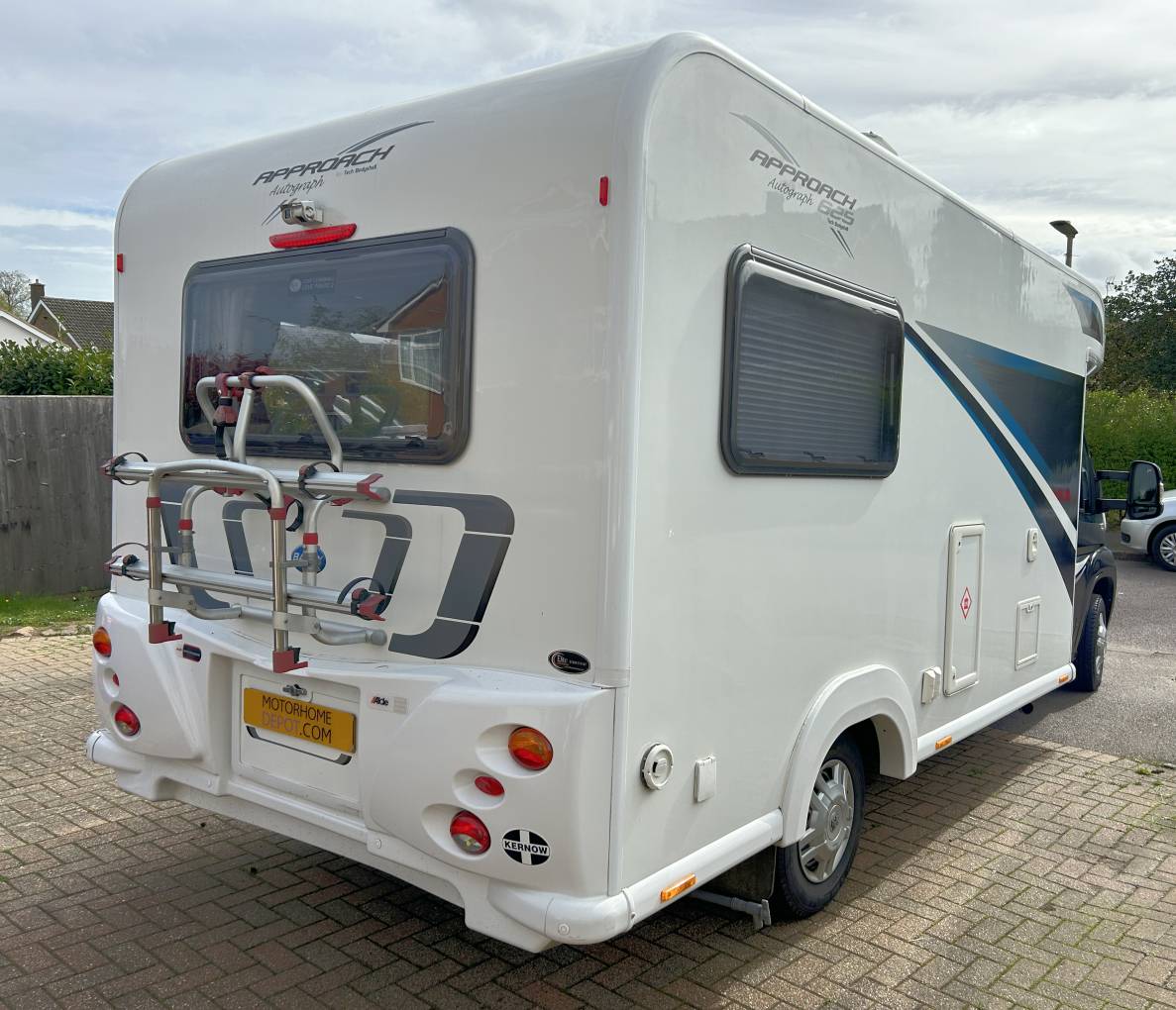 This low profile Bailey Approach Autograph 625 features a striking black cab with stylish graphics. It has reversing sensors as well as a camera so you will have no problem parking it or reversing. At just 6.5 metres in length it is easy to drive and navigate down country lanes but is surprisingly spacious when you are inside it.
