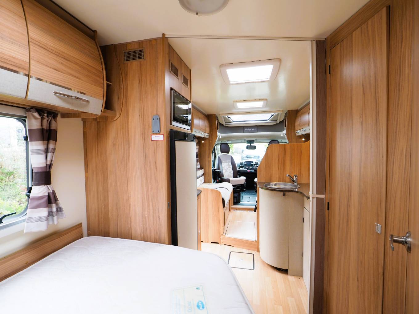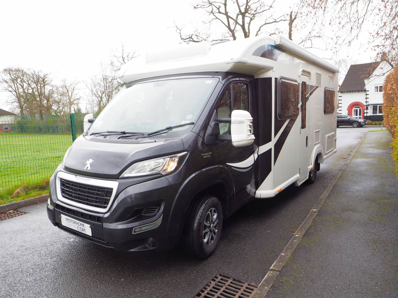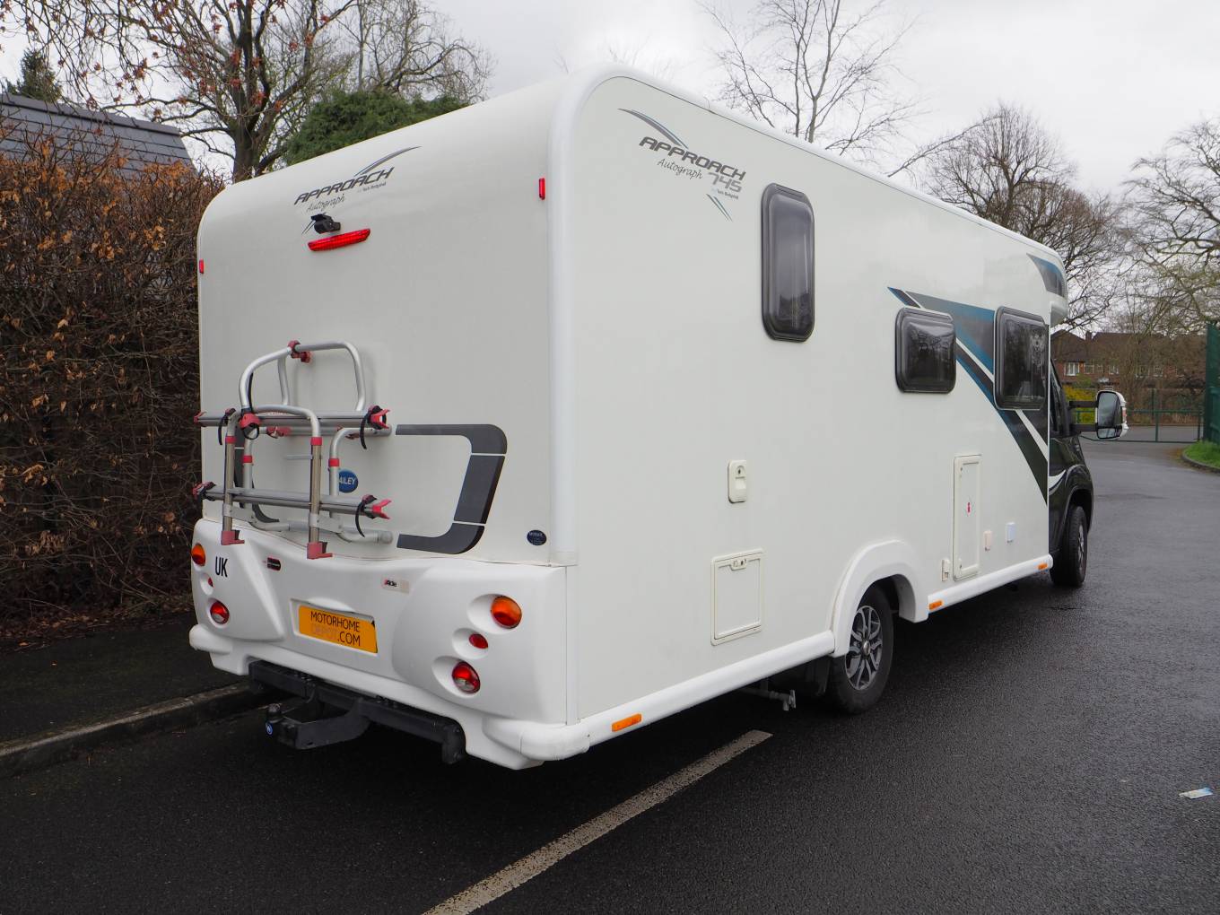 Motorhome Depot Wrexham & Gwynedd are pleased to be able to offer this Bailey Approach Autograph 745. A 4 berth motorhome with fixed French bed. The kitchen area is complete with Thetford oven, grill and duel-fuel hob (3x Gas burners and 1x electric hotplate), Dometic 117L Fridge with detachable freezer compartment, 800w Microwave and a stainless steel circular sink with mixer tap. Plenty of storage with overhead and under counter cupboards with shelving, wire rack and cutlery drawer. To the rear is the fixed French style bed with storage lockers to two sides. The bed base raises on gas assisted struts to reveal a huge storage area with external access too from a side mounted locker door. The washroom features a Thetford cassette toilet with electronic flush, wash basin and vanity unit with storage and a separate shower cubicle. Up front is the dining and lounge area with extendable and removable dining table. The driver and passenger seats swivel inwards to provide additional armchair style seating. The sofas convert swiftly to a large double bed. The space also can be configured to a larger sofa area with a base infill (included) to provide a U-shaped lounge with sofa opposite.External access to the under bed storage locker, toilet cassette and gas, water point. A bike rack, tow bar and wind out awning are fitted too. Heating and water comes via the duel fuel Alde Hydronic system (powered by gas or 230v electric hook-up) with programmable timer. A solar panel is fitted alongside twin leisure batteries. If you have any questions, would like to see the full photo-set or would like to book an appointment to view please get in touch via the links on the website. Free 31 day drive-away insurance available through our partners at Caravan Guard. This motorhome can be driven on a standard UK license without the need for C1 classification. Finance, part-exchange and warranty are available. The Autograph 745 is located near Conwy, North Wales.