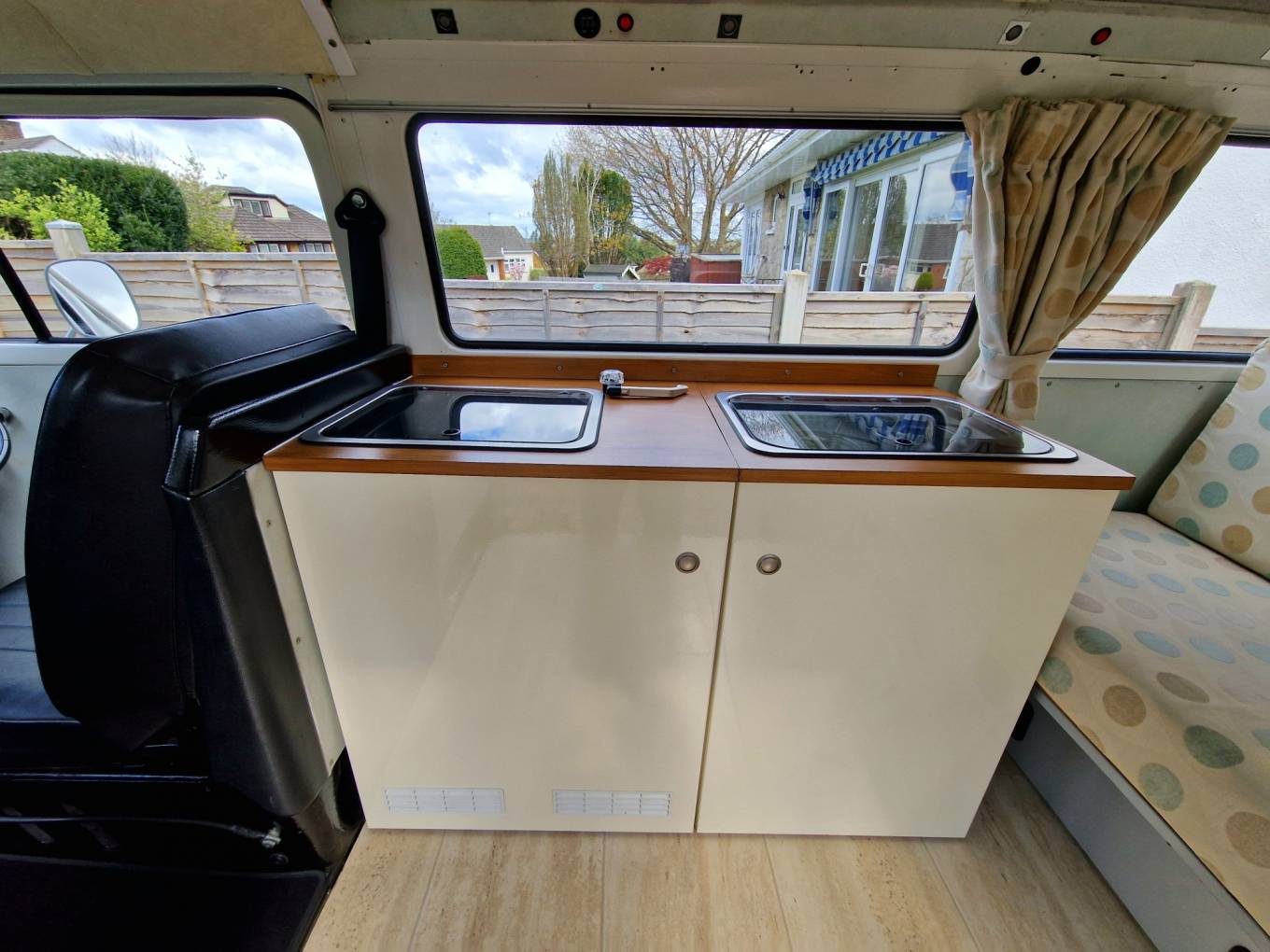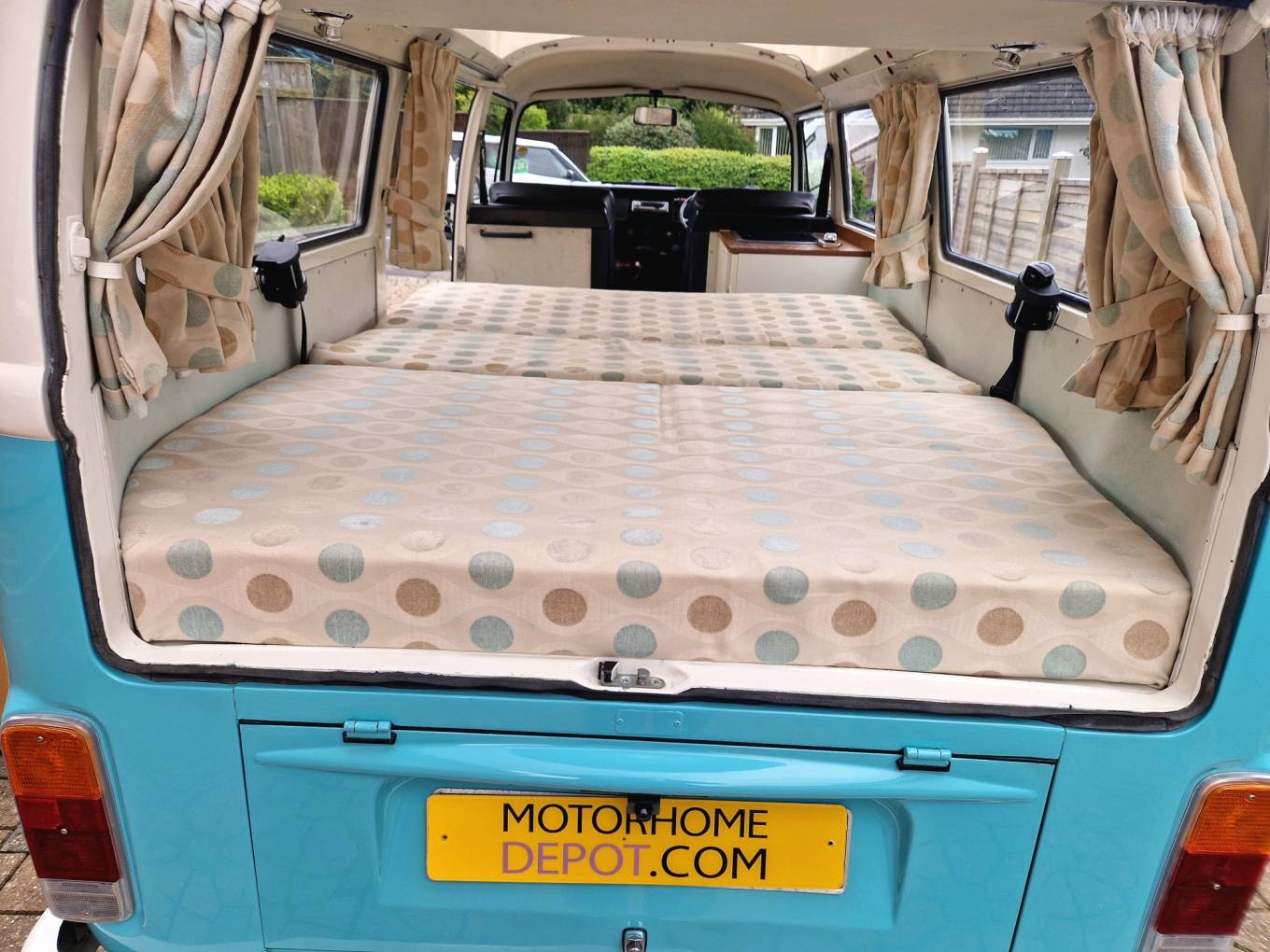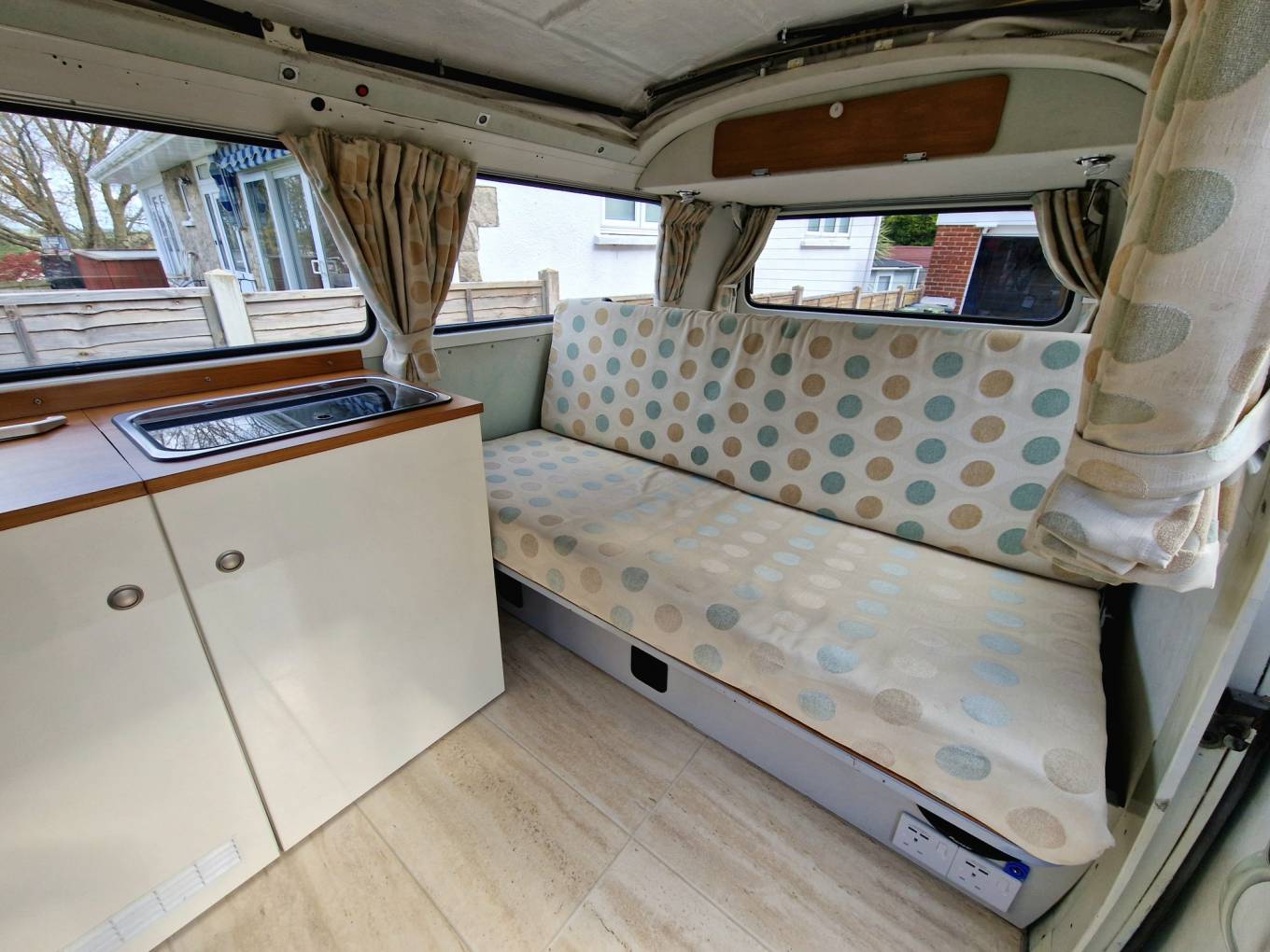 The van has a normal rear seat (rock and roll bed) converting down to a FULL WIDTH King size bed when the cooker is removed typically to your awning, again as seen in the pictures.