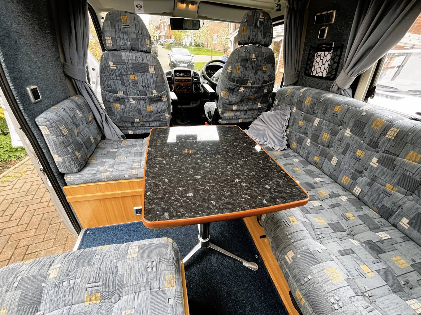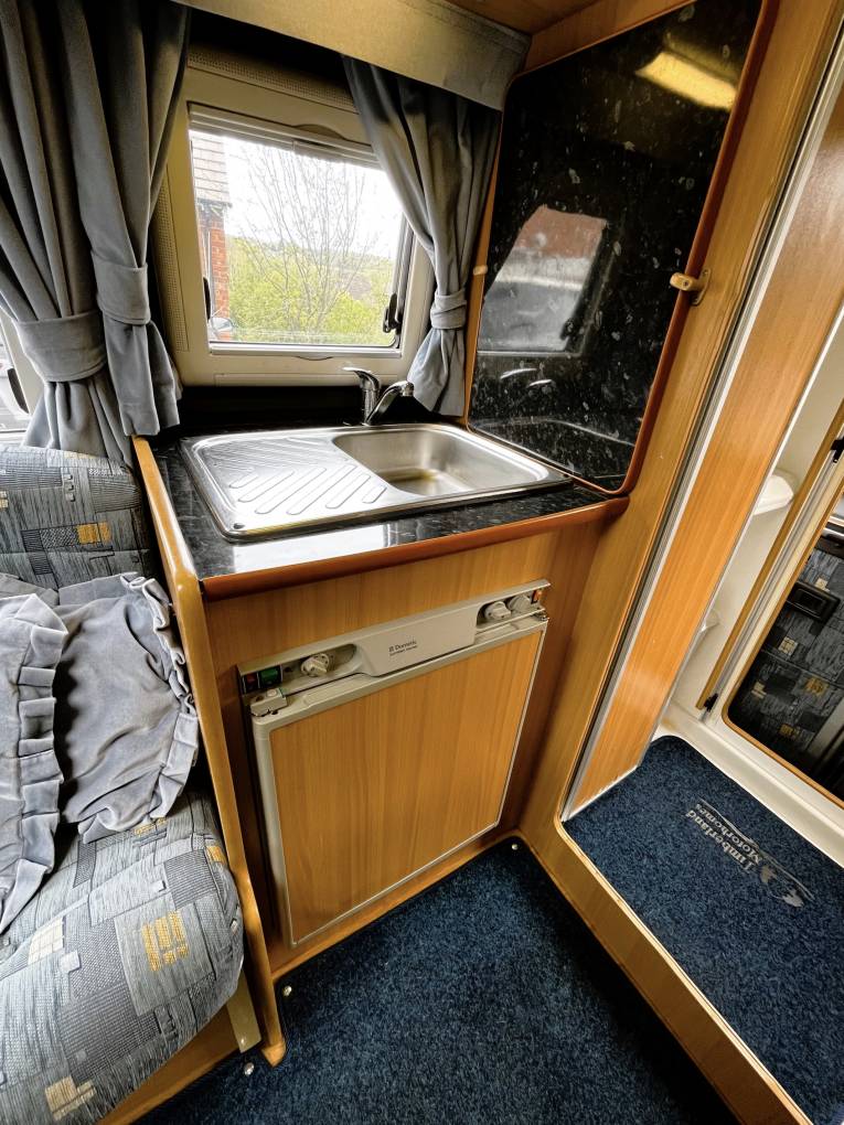 Externally there are the access points for 230V electric hook-up and water, a tow bar and bike rack, and a wind out sun canopy. At only 5.8m length this is an easy to manoevre vehicle and could double as a daily driver and day van as well as a fully featured camper. Warm air heating and hot water provided by the Truma duel fuel boiler and there is a 12v leisure battery to compliment the 230v electrics. Weighing in at 3300Kg the Freedom can be driven on a standard UK license.