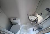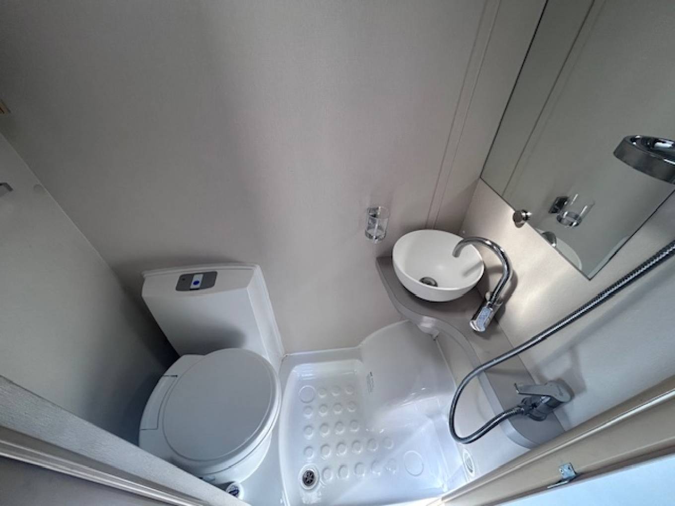 washroom is surprisingly spacious and contains a cassette toilet, shower, wash