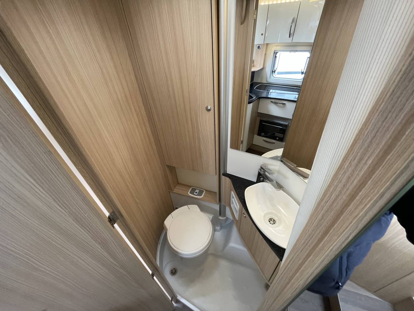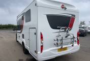 There are four travelling seats with seatbelts and plated at 3500KGs, drivers of the Nexxo will only need a standard driving licence. Up front the 2.3 turbodiesel engine is married to the Fiat 6 speed gearbox. Cab air conditioning, cruise control, Radio, rear camera and large screen satnav all make for easy travelling. Outside features include metallic paint, alloy wheels, heated rear garage with internal lashing points and twin access doors, roll out sun canopy, Thule 2 bike rack. For additional security an aftermarket alarm is fitted.