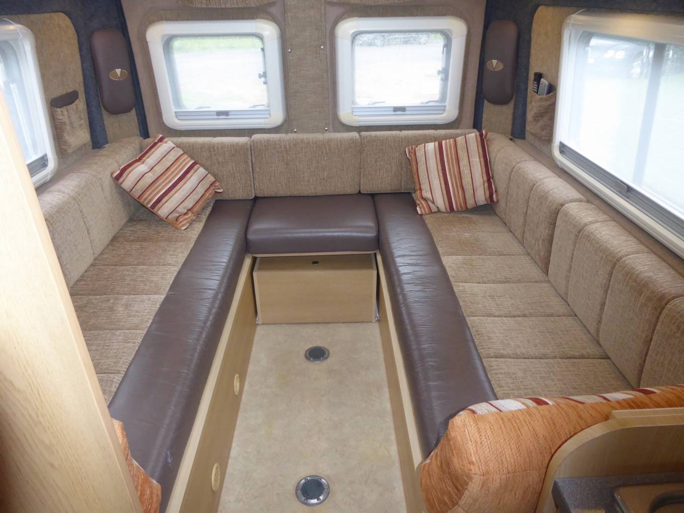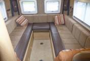 By rotating the swivel cab seats, a snug, fast dining spot can be created up front, which also provides a leisure space if the rear area is hosting a lie in or an early night. The vehicle is supplied with two table top sizes and three removeable leg lengths. The real star of this layout, the airy and spacious U-shaped rear lounge can be readily converted into a transverse double bed, or used as two single beds.
