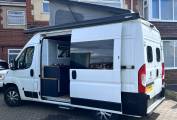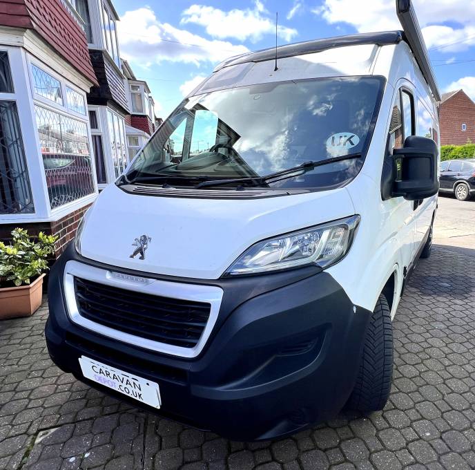 Motorhome Depot West Yorkshire brings to market a bespoke camper conversion on a Peugeot Boxer 335, the cab offers, steering wheel controls, blue tooth connection, air conditioning, cruise control, stereo system reverse camera. this motorhome accommodates 4 for sleeping and 6 travelling belts. The pop up top gives you plenty of head room and an extra double bed, the diesel heater is convenient and instant, so even if you just stop off on your travels you can pop the heating on any time. you can keep your food fresh in the 12v fridge and cook up a feast with the gas hobs and more workspace than you will ever need with the solid wood worktops, there is a sink with mixer tap, plenty of storage space through out. It has two gas bottles so you can keep topped up no matter how far you go, keep your self entertained with the TV with portable areal and enjoy the outside with the wind out canopy to create a large living area. This camper has been serviced 18/4/24 has a full years MOT, new vehicle battery March 24, 4 new tyres April 2023. This motorhome is a fantastic way to have a trip of a lifetime and create memories to last for ever, even when you get to your destination you can drive to nearby sites in this perfectly sized motorhome. It can be viewed by appointment in Doncaster, South Yorkshire.