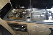On entering you have two front cab seats that fully swivel into the dinette area where there is a removable table and two further travelling belted seats for passengers. Moving to the center is a well equipped kitchen with 2 ring gas hob with glass lid, oven/grill and sink with work top space, fridge. Opposite you have space with washroom, shower with fold down sink. Moving to the rear of the vehicle you have a rear lounge area that will make into a good size double bed, It has removable bunk beds so you can sleep up to 4 passengers (2 on top double and 2 on lower double). Alternatively, you can remove the top bed assembly which gives lots more space in the rear of the vehicle. This motorhome is easy to park and to drive . Ideal for day-to-day use, short breaks, travel to Europe and weekend getaways.