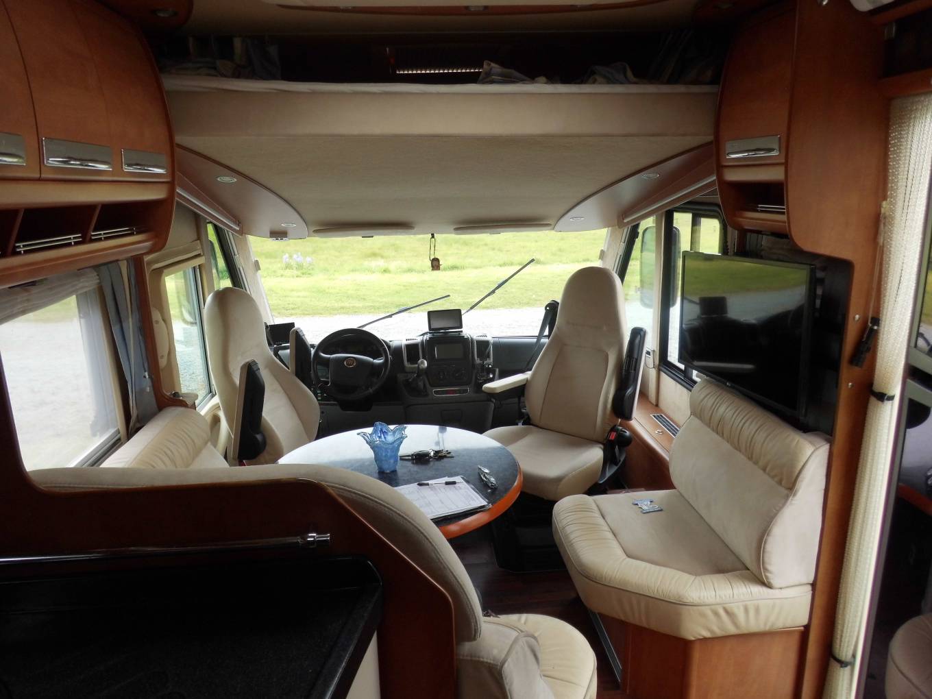 LHD Carthago Chic i 51 sport line on a fiat ducatto chassis with 3 litre diesel engine, and an automatic gearbox, making this a please to drive. Ideal for off grid camping, with gasporina generator, self levelling system, refillable gas bottles, making this a great vehicle for both U.K and continental touring, with double insulated floor, this is also suitable for skiing season and Scandinavian touring. Not may with this specification around, tow bar with extra read collision bar, dual camera system. Oyster dish, habitation air conditioning located in the roof of the sleeping quarters, option of either two single beds or large double, over cab king size bed, inverter on board, extra security locks for safety. Large rear garage ample space for most requirements. Making this also ideal for the weekend sports enthusiasts. Difficult to find such a well specified touring vehicle, that offers both comfort and practicality. Part leather upholstery, ample dinning area, with both front seats. Well equiped kitchen with fridge freezer, oven and hob.