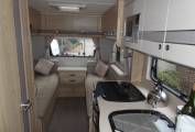 There are two double beds in the Elddis Autoquest 195. Either use the two pull-out slatted platforms to make a double at the front, or roll out the slats down the centre of the rear lounge to make up the double there. Ample storage throughout the vehicle with a good payload of 608kg.