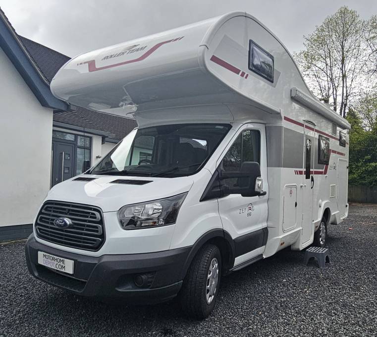 Motorhome Depot Ashfield are happy to present this 2019 Rollerteam Zefiro 690G based on a 2.0 Ford with a 6 speed manual gearbox, to the market for sale. This very desirable motorhome comes with many extras such as Air Suspension, solar panel, reversing camera, Truma iNet heating and many more. Weighing in at 3500kg, it can be driven on a standard UK License and with 6 Travelling seats and 6 berth, makes it the perfect Family Motorhome.