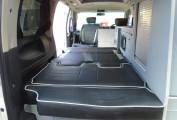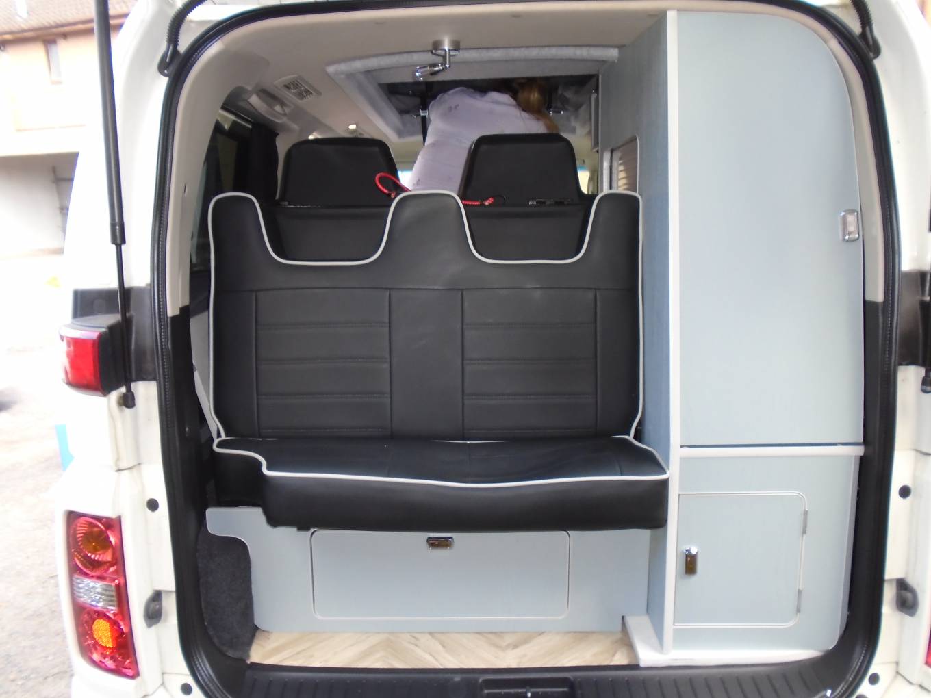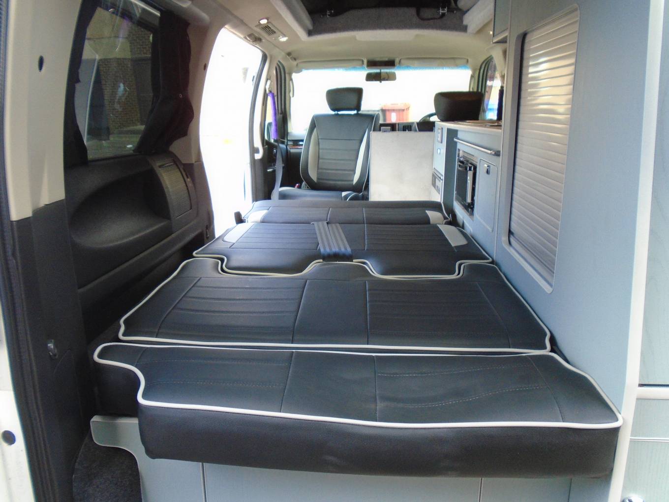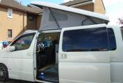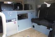 Cab air conditioning, Electric mirrors and Windows, Pop up roof, Reversing Camera, Four seatbelts, Stainless-steel sink with cold running water, 12V fridge with small freezer compartment. 2 x 240V sockets, 1 x USB socket, 12V lighting, Stow away dinging table, 1 x gas cylinder, onboard water tank.
