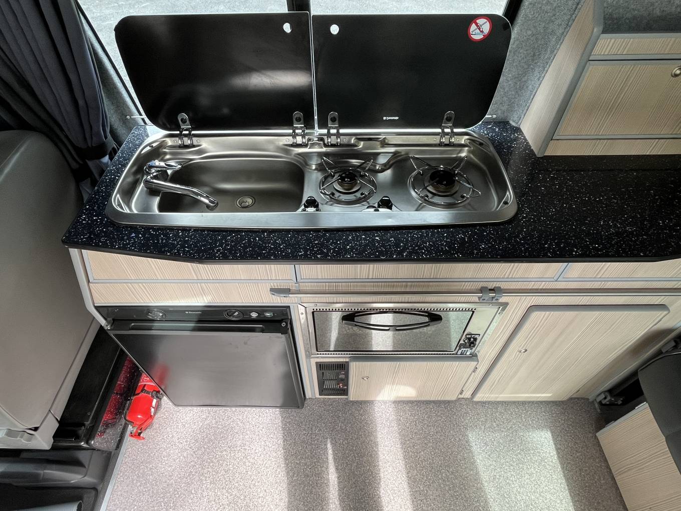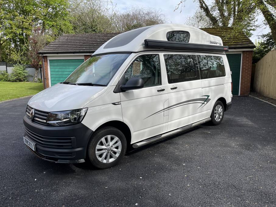 VW T6 Hi Top Leisuredrive Crusader, professionally converted and beautifully finished by Leisuredrive Campervans in Bolton. This is a LWB which give extra space and the fixed Hi Top gives plenty of headroom and additional storage. At the rear is the Rock and Roll bed with 2 seat belts, the kichen is well equipped with 3 Way Fridge, Hob, Grill and Oven. There is a Blown Air Heater and the front passenger seat swivels. It also comes with DAB Radio, Canopy Awning, Gas Bottle, Mains Hook Up and 2 sets of keys. This van is in excellent condition inside and out with good service history, including new cam belt 2022, and MOT till May 2025. Available for viewing by appointment in Southport, call for more photos, videos and information.