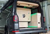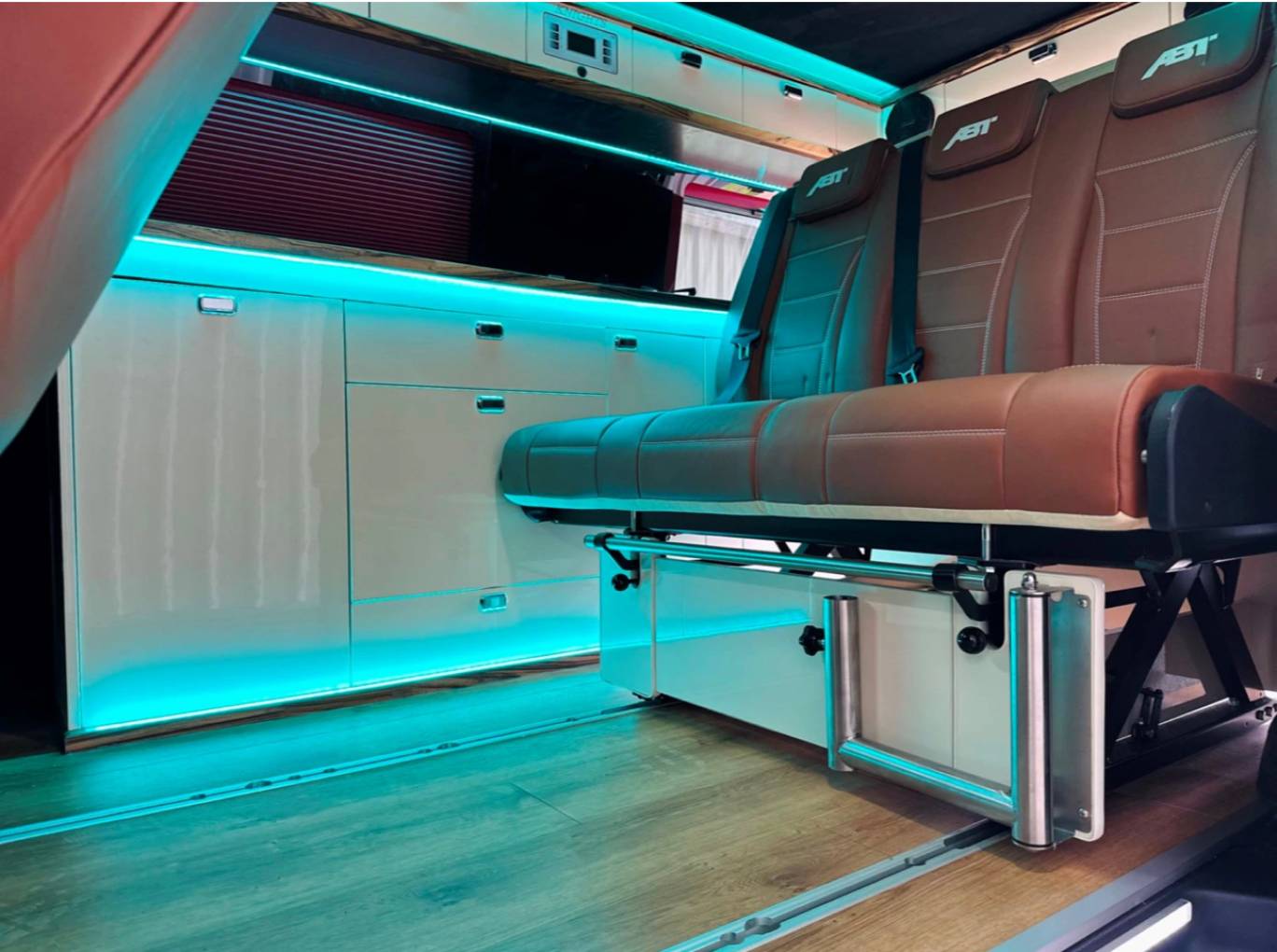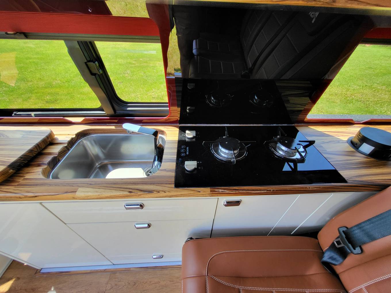 Upgrade driver and passenger windows to Flush openingFurniture DELUXE solid wood Worktop and Detailing with Lightweight PLY, Drainer grooves, Chopping board with HOT rods underneath, table mounted on the bed back and underbed drawers.