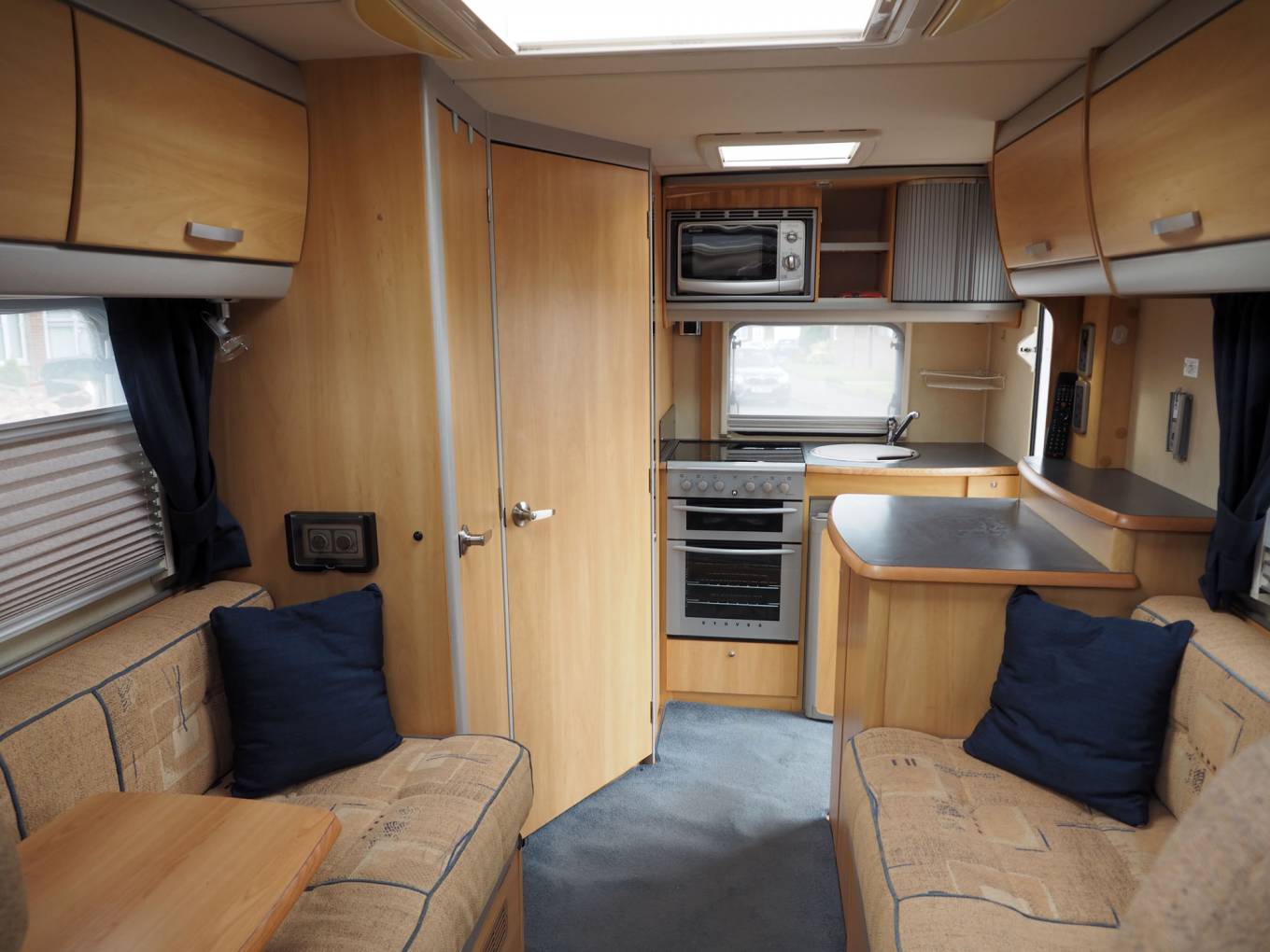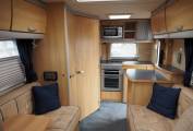 Full facilities are on board including fresh and waste water tanks, dual fuel heating and hot water, full kitchen with dual fuel hob, gas oven and grill, microwave and fridge, while in the washroom you will find an encloseable shower space, toilet and vanity sink.