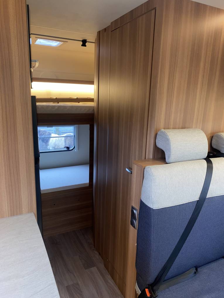 The Carahome 600DKG is equipped with bunk beds in the rear of the