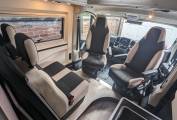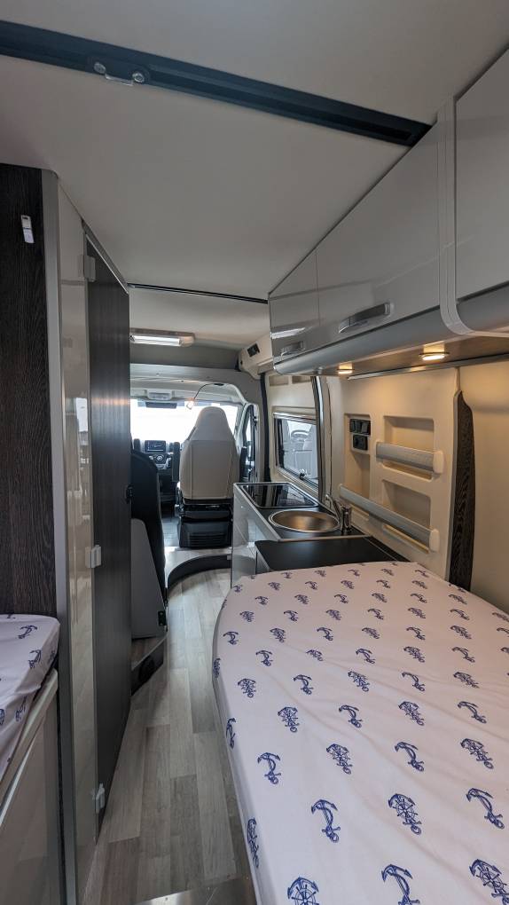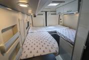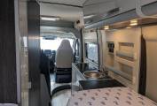 As you settle into the plush seat bench with the centre dinette begging for it's next meal to be placed, you can't help but admire the thoughtful details that make this campervan a true home on wheels. The integrated front bed beckons you to rest and recharge, while the carpet in the passenger area adds a touch of warmth and comfort.