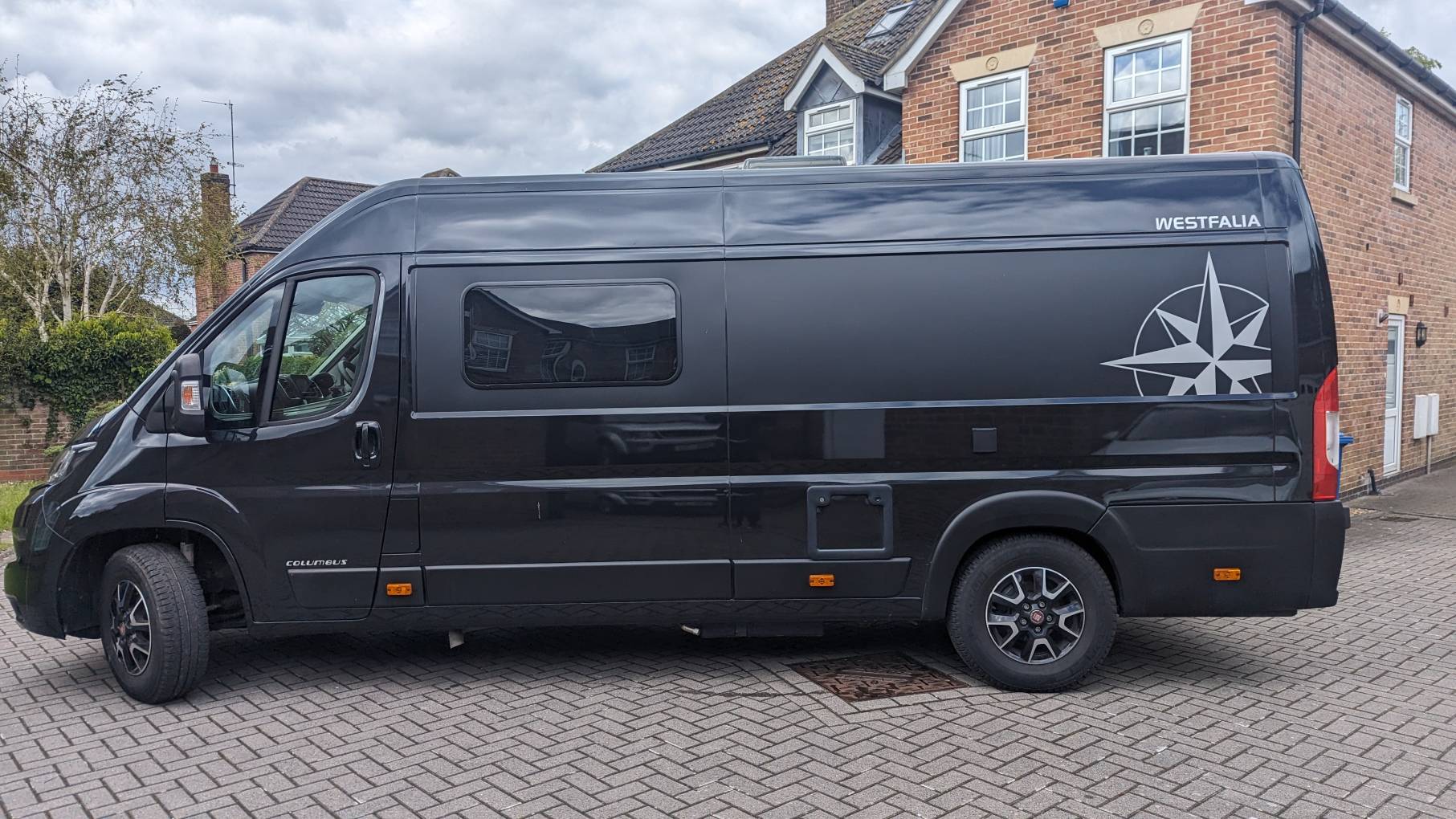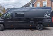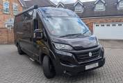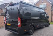 Your eyes are immediately drawn to the sleek black metallic exterior, gleaming under the soft glow of the interior lights powered by the twin leisure battery. The painted bumper, perfectly matched to the vehicle's colour, adds a touch of sophistication to the campervans rugged exterior.