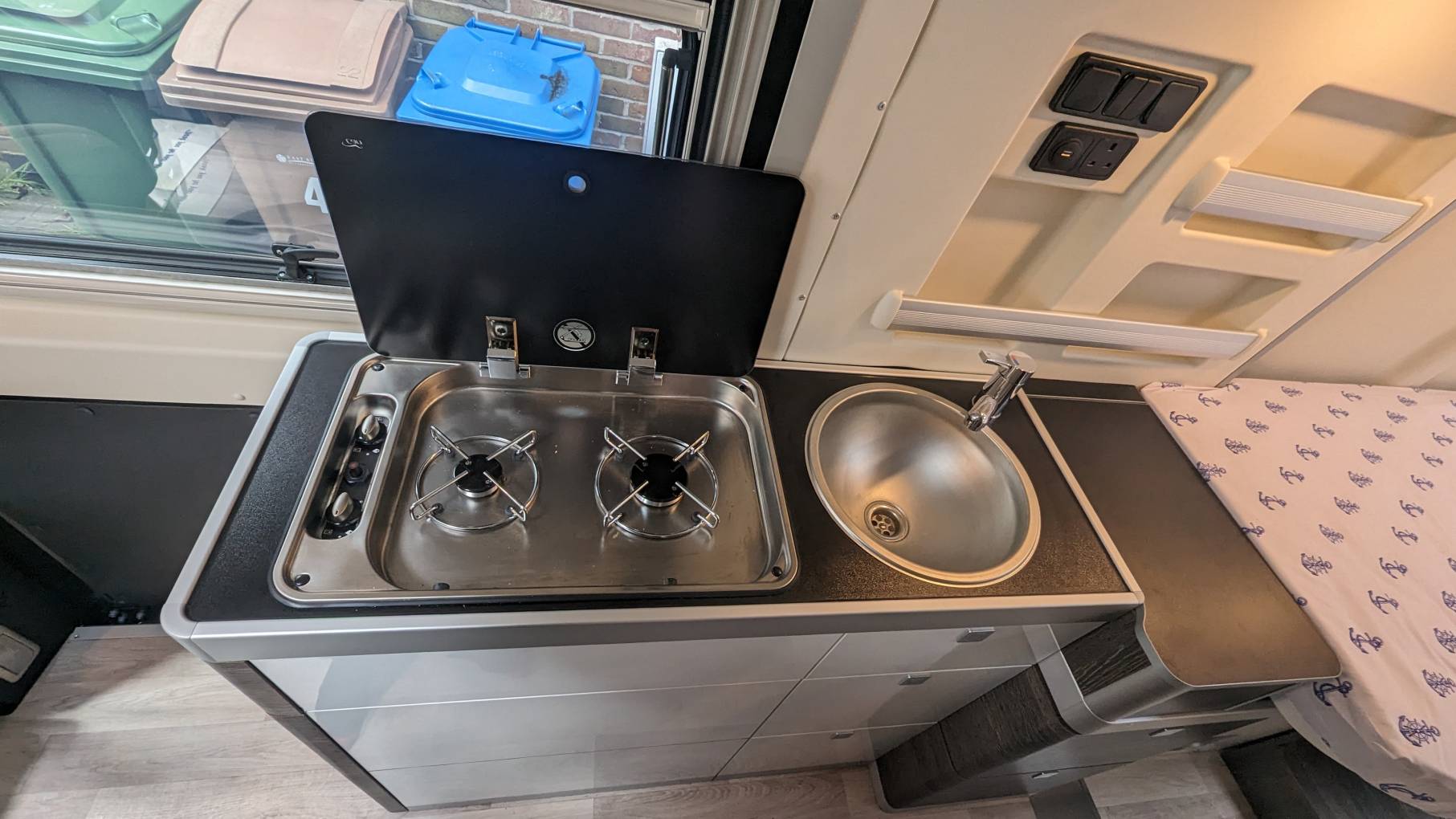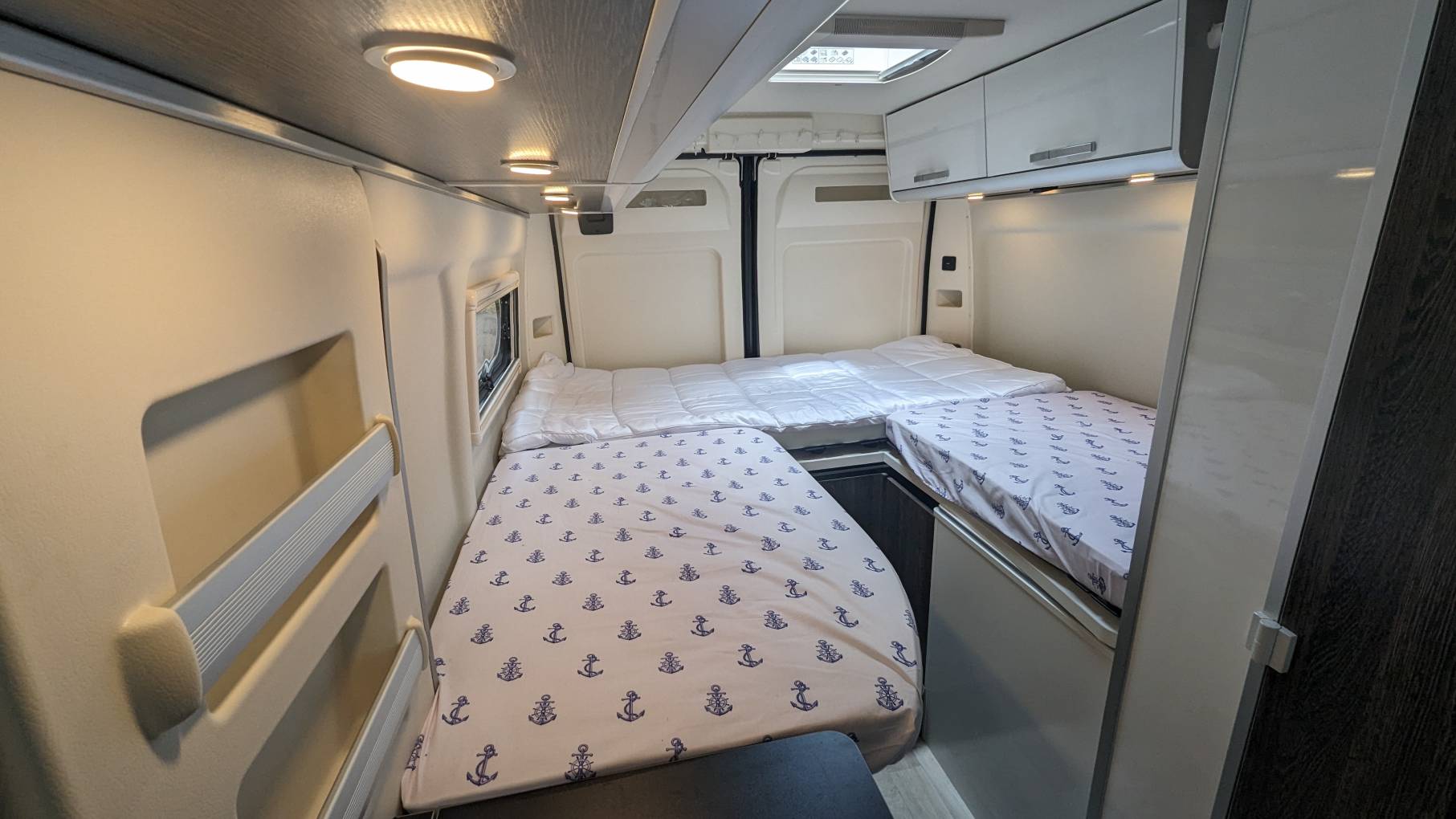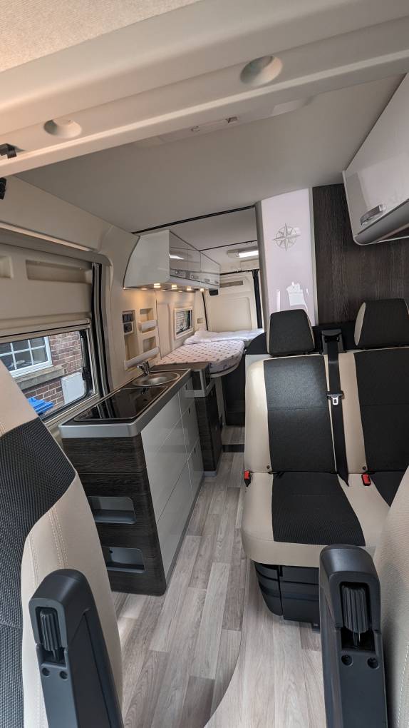 With a wireless charging pad at your disposal, you're ready to keep your devices powered up for the journey ahead. And with 2 x leisure batteries and a 10kg LPG gas tank, I board 100L fresh water tank, you can venture off the beaten path with confidence, knowing you'll never be far from home.