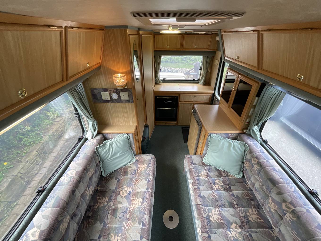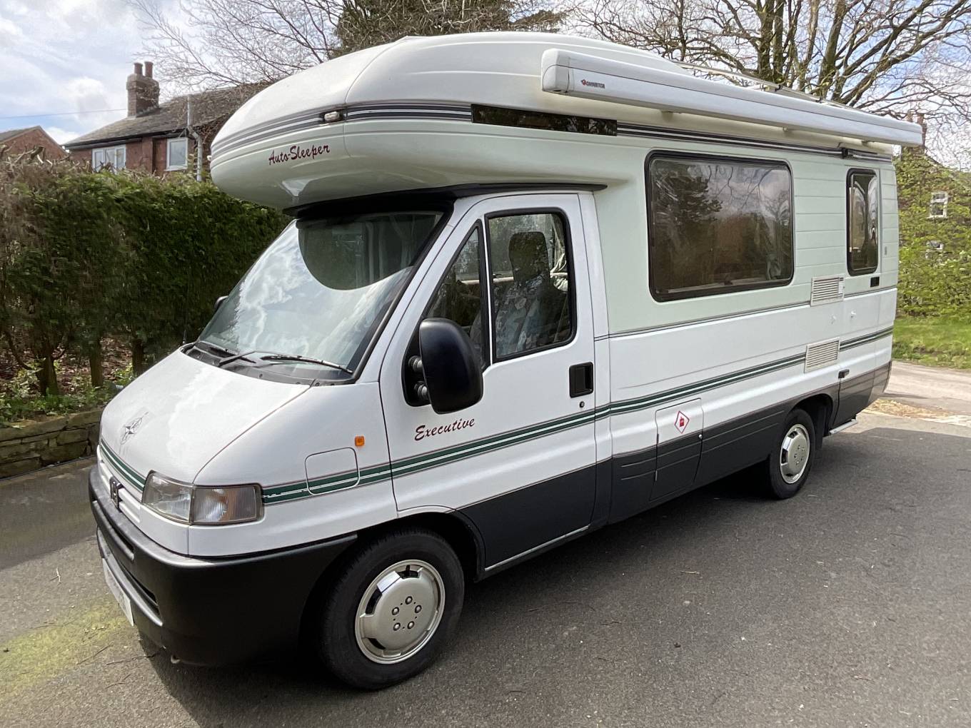 Motorhome Depot are delighted to bring to the market a classic Auto-Sleepers Executive motorhome for sale. Based on the Peugeot chassis, this 4 berth/belt coachbuilt boasts the 2.5 litre diesel engine with a 5 speed manual gearbox and has fantastic service history. Starting at the rear, we have the kitchen area that includes a 4burner gas hob, grill, oven, hand wash basin and a 3 way fridge. Adjacent to this is the washroom which is comprised of a bench style cassette toilet, space saving drop down hand washbasin and separate shower controls. Moving into the lounge, we have 2 long side benches that can be used as 2 singles or be pulled together to make a double if required. There are also 2 additional retrofitted lap belts for any additional travellers. The lounge also has 2 different table positions to give additional versatility. The storage throughout is also fantastic with the overhead lockers and under bench options. Please call our friendly sales team for further information or to arrange a viewing