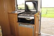 Moving along the vehicle you have the fully equipped kitchen area with 4 gas ring hob, grill, small fridge with box freezer compartment, sink, extendable side for additional work top space. Plenty of storage.
