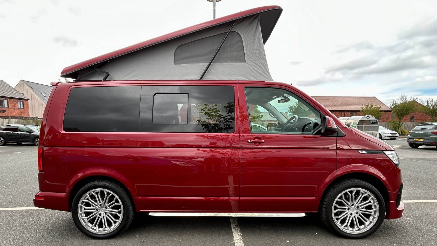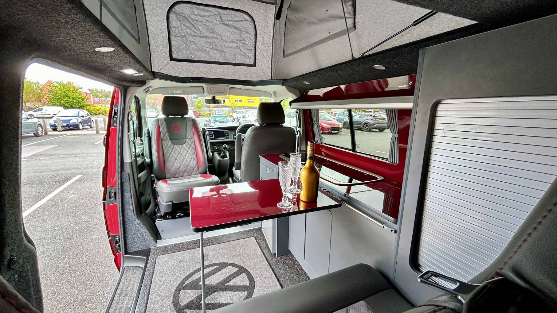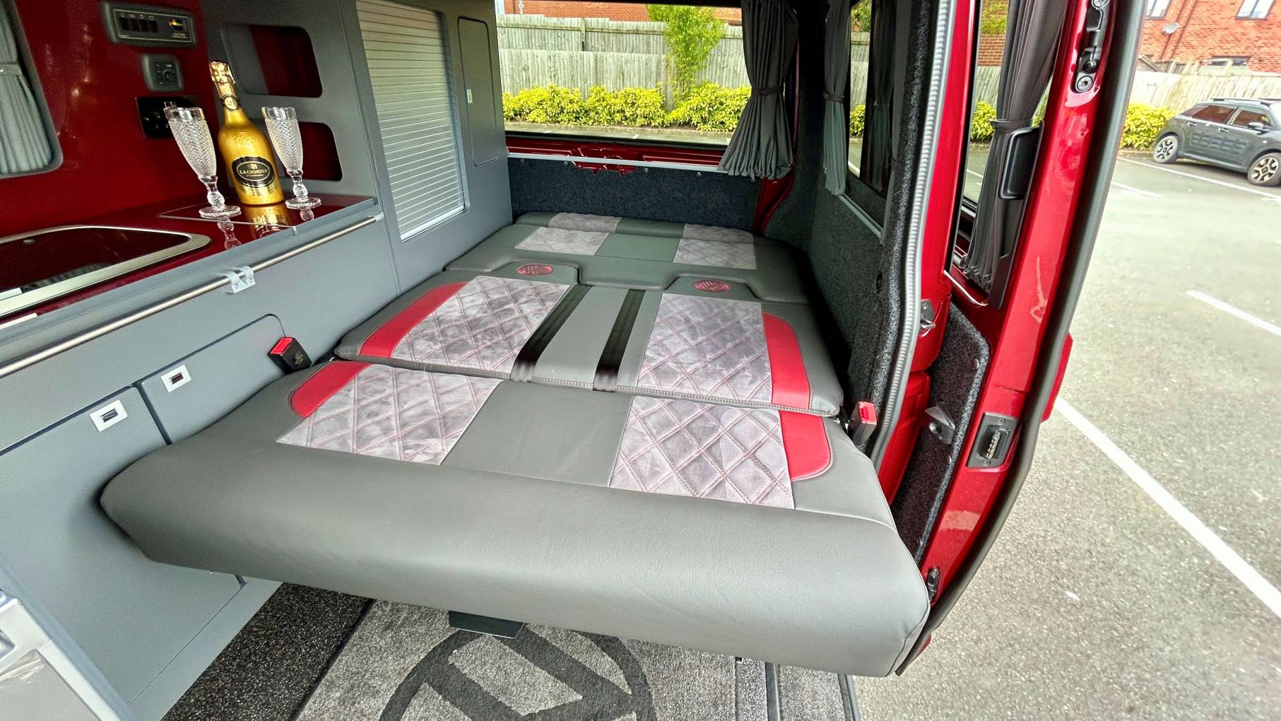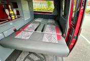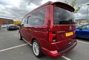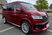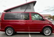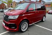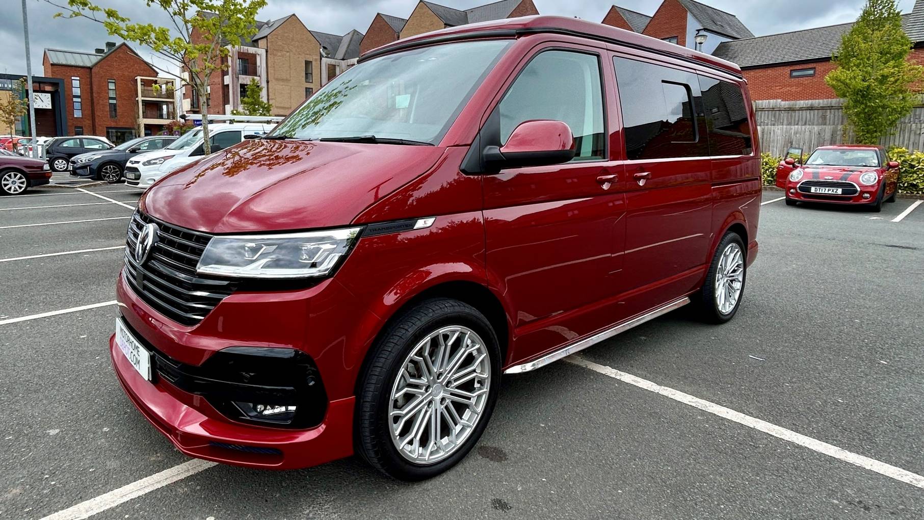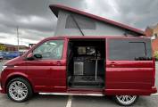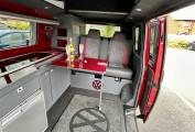 This striking 4 Berth with 4 seat belts comes in Fortuna Red with upgraded and unmarked Velare 20” Alloys and just 10,600 miles, 6 speed manual gearbox with the powerful 150Bhp engine and A DAB digital head unit with Bluetooth, Apple & Android Auto. The van has a Pop Top which provides the option for 2 to sleep in, with a rock and roll bed below making this into a 4 Berth Camper.