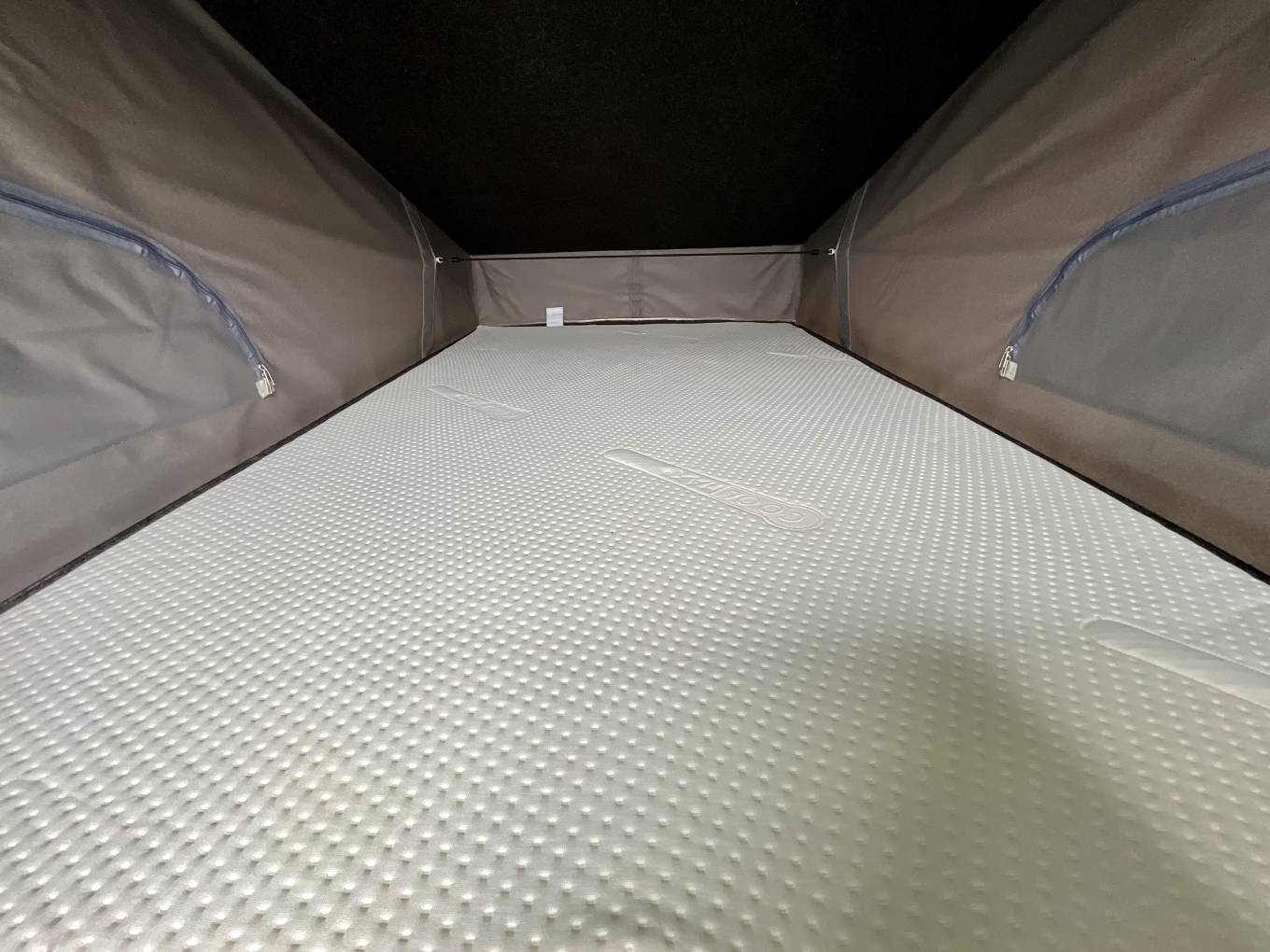 To maximise space and headroom, this campervan comes fitted with a pop top, complete with mattress topper for comfort. The pop top can be filled with natural light through the zippable side mesh windows and front window.