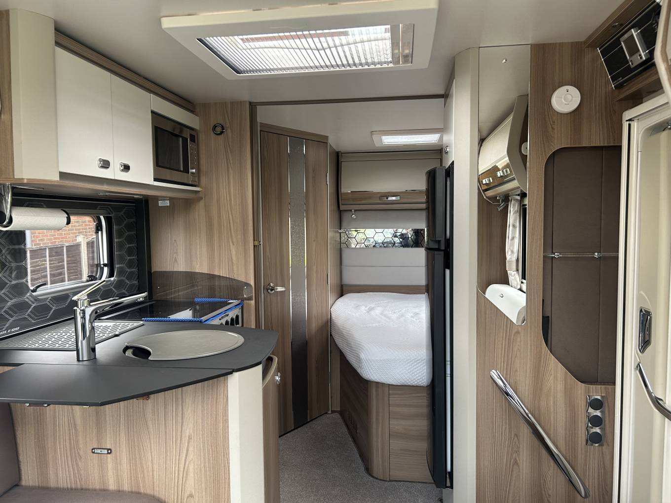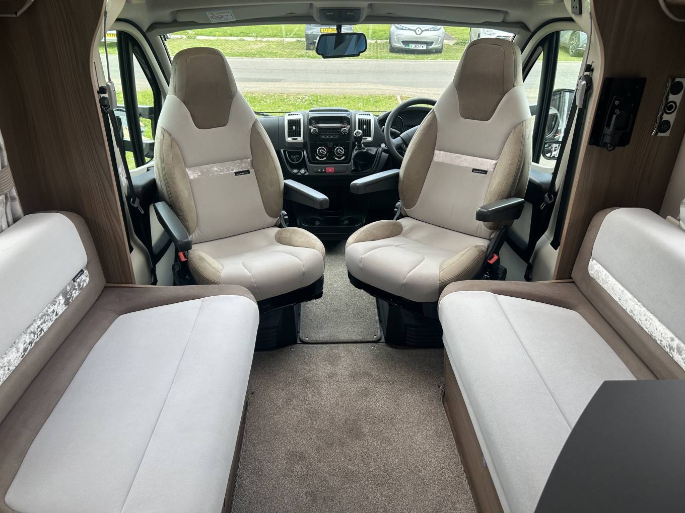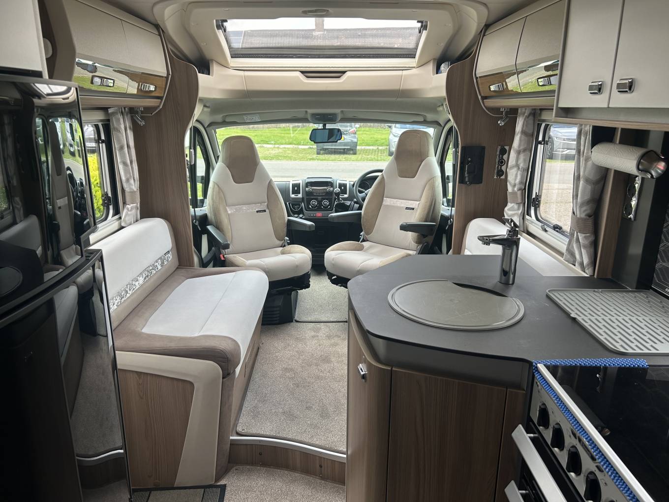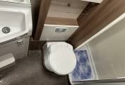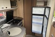 This motorhome is built on the Fiat Ducato chassis and has a 6 speed manual gear box with 2.3l engine and 130 Bhp. It comes with cab air conditioning, cruise control, a rear view and reversing camera making it a joy to drive. The living area is excellent for a couple or single person and is presented in excellent condition. At the front you have a spacious lounge area which is made up of two side facing double sofas and makes use of the two captains chairs. There is a cleverly stored self standing table that can be placed in the middle to create an ideal dining area for up to six people. Moving back you have an extremely well equipped kitchen, this features an oven, grill, duel fuel hob with 3 gas burners and an electric hot plate. There is also a microwave oven and large 3-way automatic fridge with separate freezer compartment. The 684 is extremely comfortable to sleep in with its fixed rear French bed which means there is no need to make up a bed every night. This bed also pulls up to reveal loads of storage underneath. The motorhome also has an excellent washroom with cassette toilet, sink, cabinet and separate shower. The Swift also benefits from the excellent Alde Wet Heating system - which has recently been serviced so is all good for the next 5 years.
