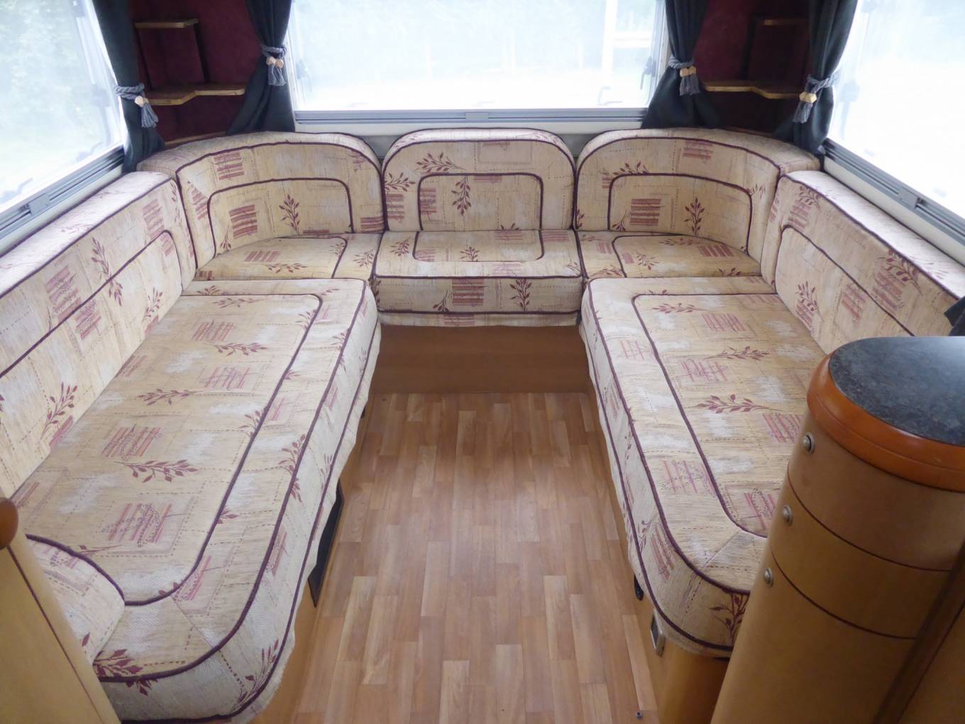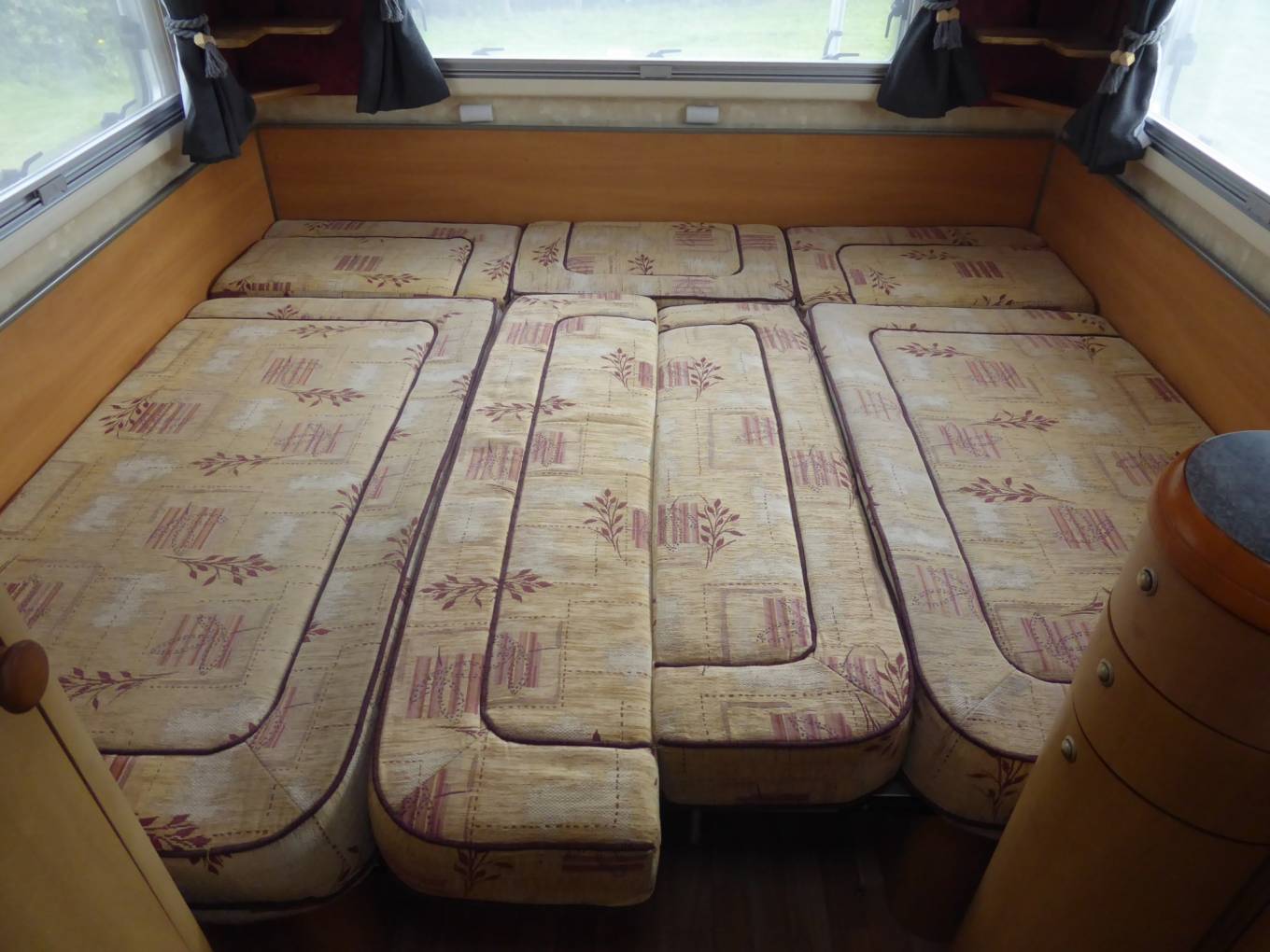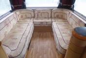 At the rear of the motorhome is a U-shaped lounge for leisure and dining. This area can be readily converted into a second transverse double berth if required.
