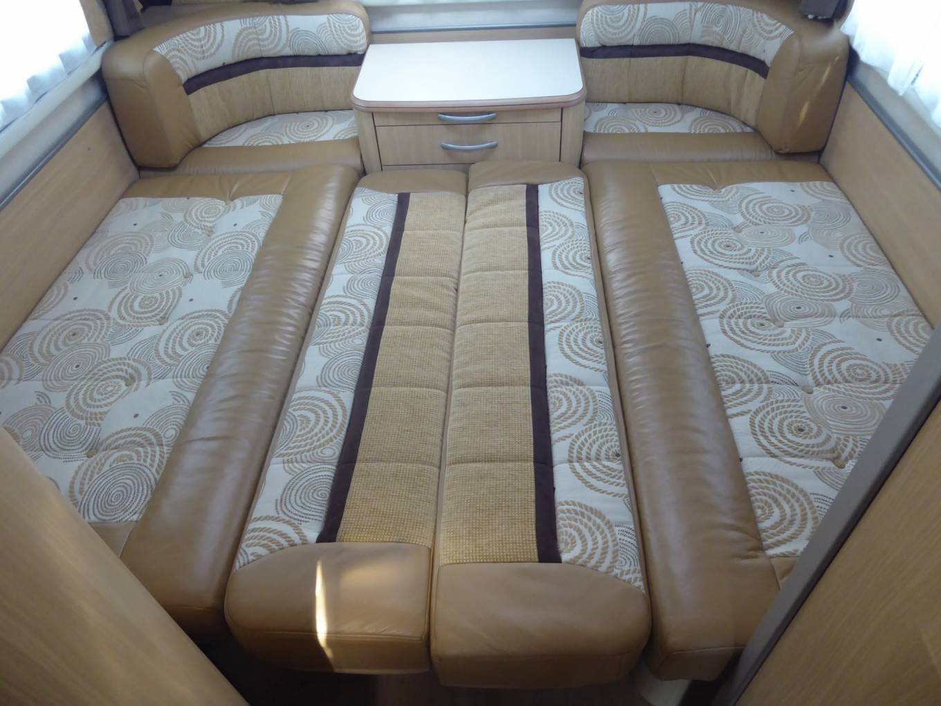 Beneath the bed are two swivel cab seats. These augment the integrated forward L-shaped lounge seating (with two additional seat belts) and, served by a conveniently located adjacent central kitchen, this area is perfect for group dining and leisure.