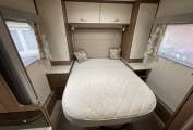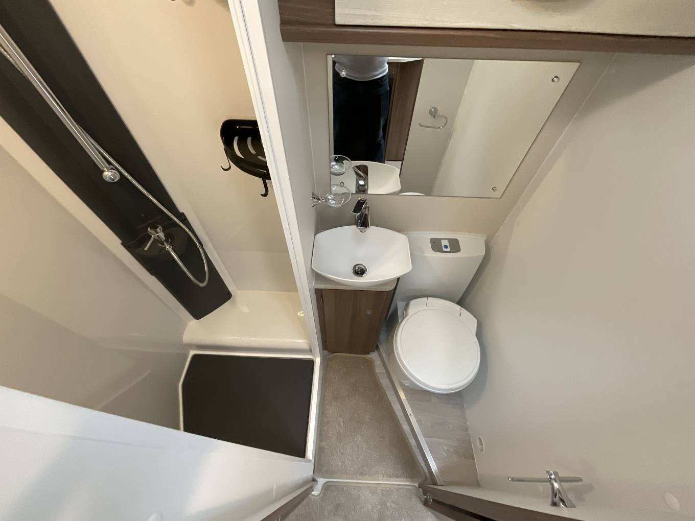 The Bedroom in the Cassini is as good as it gets with its domestic-style island bed, which sits alone in the rear with a good level of space around its foot and can slide back through the daytime to almost half its size. there is lots of very useful storage space with twin wardrobes and two overhead cupboards, including the under bed storage.