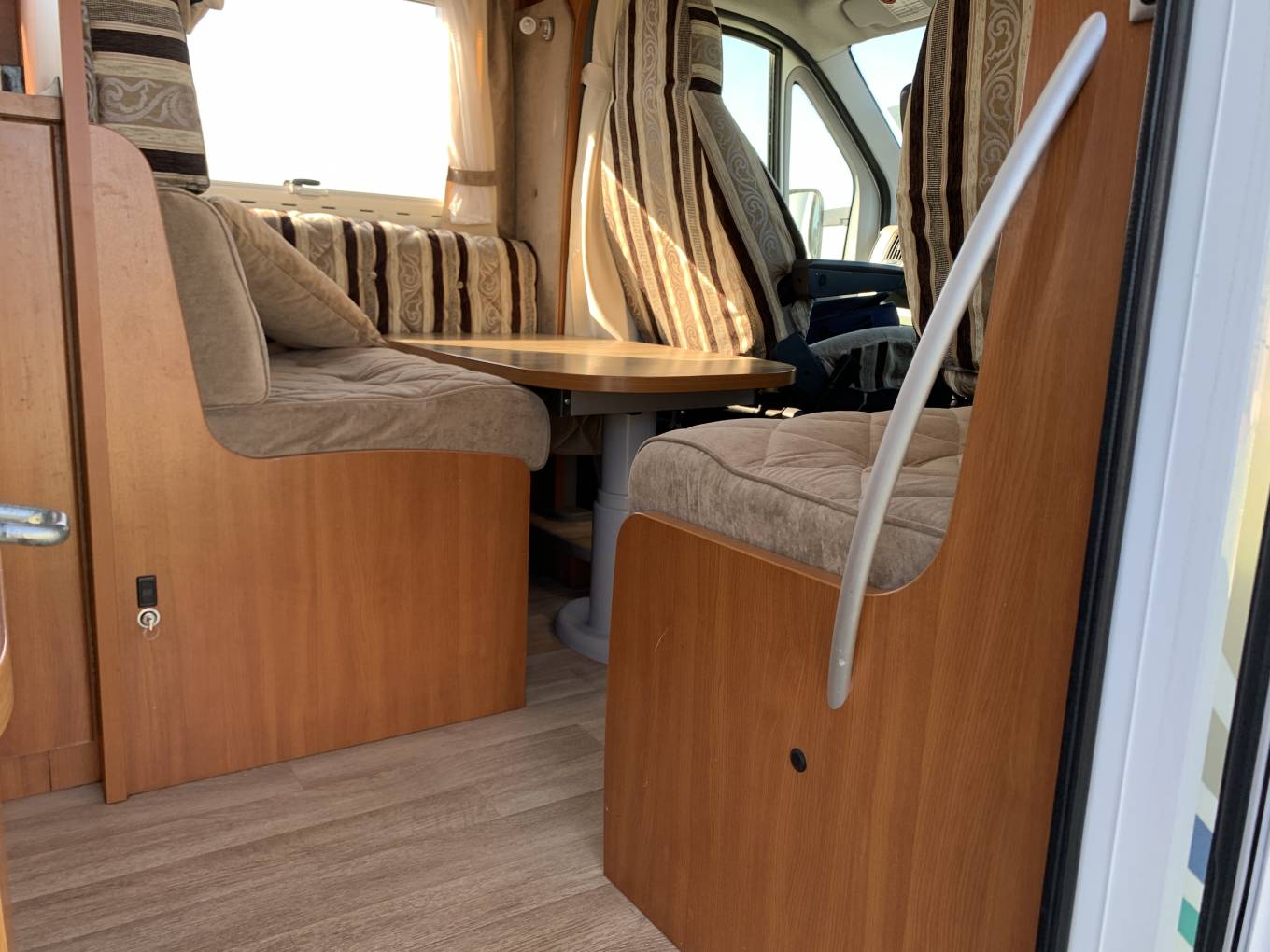 The cab comes with Cruise Control, Air-con,Sat-nav electric windows and mirrors and cab seats that swivel to face the lounge.