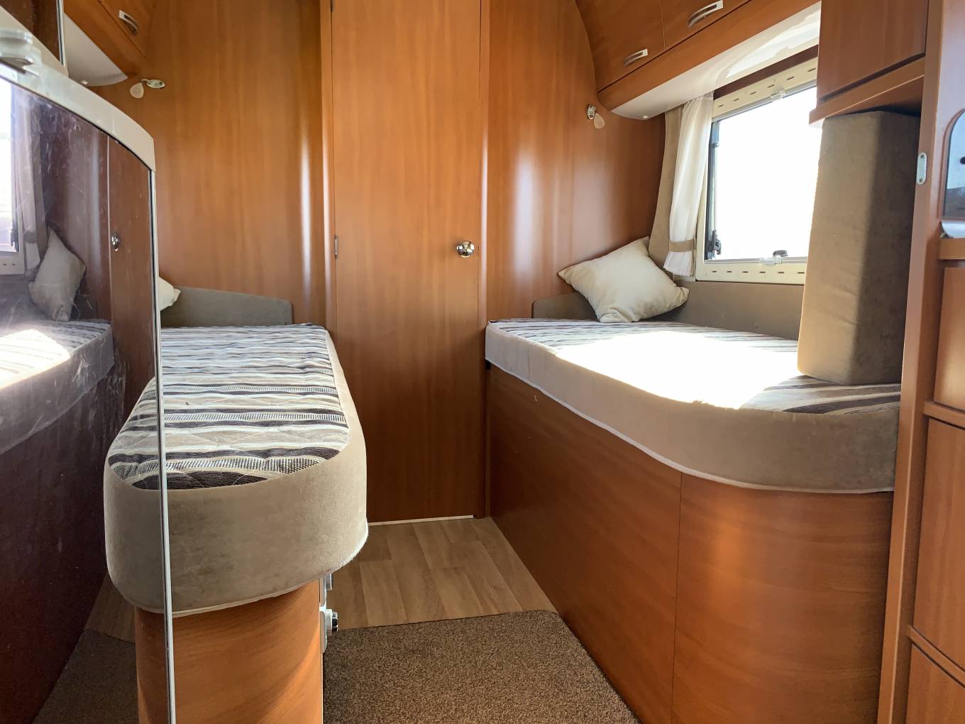 A low profile 3 berth with 4 belts featuring full width rear wahroom and fixed single beds, plated at 4005kg requires C1 entitlement to drive.