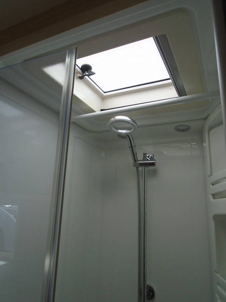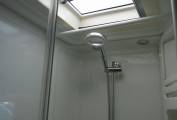 The bedroom has two single beds with two infill cushions to create a large spacious Double bed. What is unique in the bedroom is an overhead Habitational Air Con Unit to aid sleep, perfect for warmer climes!! There is ample storage space throughout the bedroom with spacious cupboards and with a lift of the left side bed there is a wardrobe with hanging space. Pull the washroom door over and you have the privacy of an en suite bathroom. The bathroom has an electric flush swivel toilet, large sink with ample storage space. The shower room is a comfortable space which at the pull of the door can close to create the en suite. The drop down bed over the cab hosts a most comfortable double bed fully lined with curtains for maximum comfort and privacy. Pull the blind over and a unique private space is created from the rest of the motorhome.