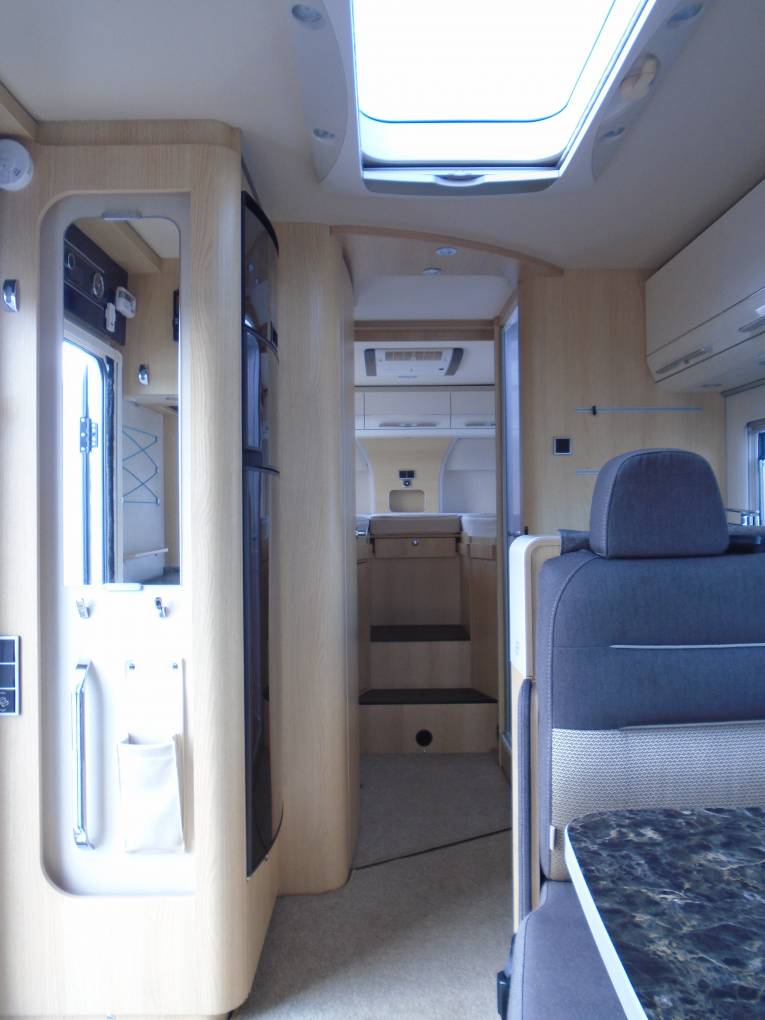Heating and hot water are provided by an Truma system on gas or electric - Double floored and winterised - there is a tv cabinet that sits above the seat in the lounge, open the cabinet and the TV rises out the space to grace the lounge for viewing and storage - TV Aerial – Pre-wired for additional points - Electric hook up – Twin leisure batteries - 230v and 12v power points - LED spot lights throughout – Exterior BBQ point – 2 gas cylinders - lovely contrasting upholstery - A class luxury extending dining table - Lots of internal and external storage - Window blinds and fly screens throughout – Samara loose fit carpets which are unused – Electric roller shutter to front windscreen - habitation aircon fitted and electric step. Electric awning fitted, 2 gas bottles