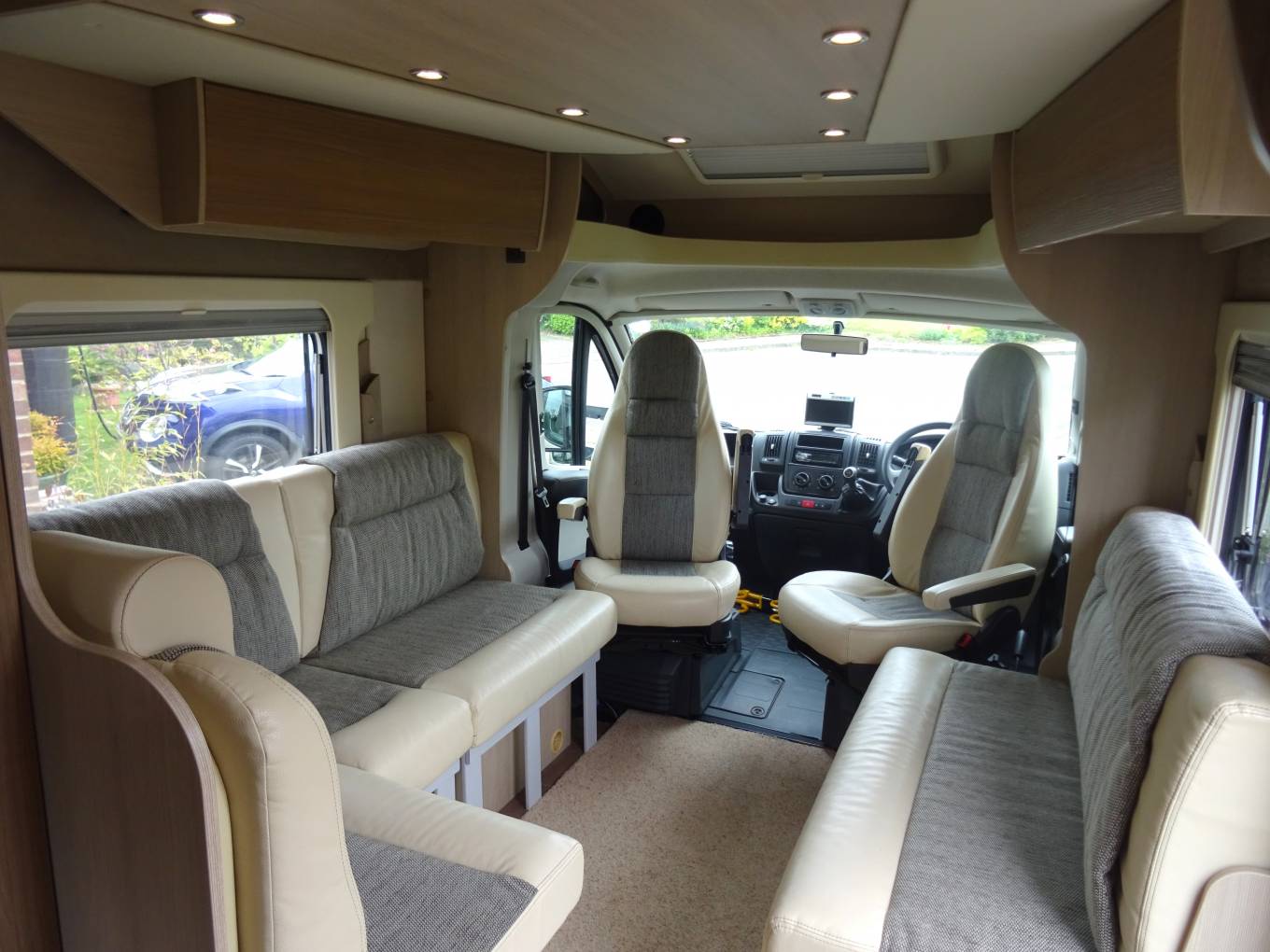 Features: Solar Panel, Bike Rack, Blinds and Fly Screens throughout including Sky lights, Habitation Door Fly Screen, Truma Gas/Electric Heating and Hot Water, Avtex TV/DVD, Vision Plus Aerial, Under seat Storage (with external hatch), 2 x Gas Bottles, Wind Out Canopy, and Mirror Guards.
