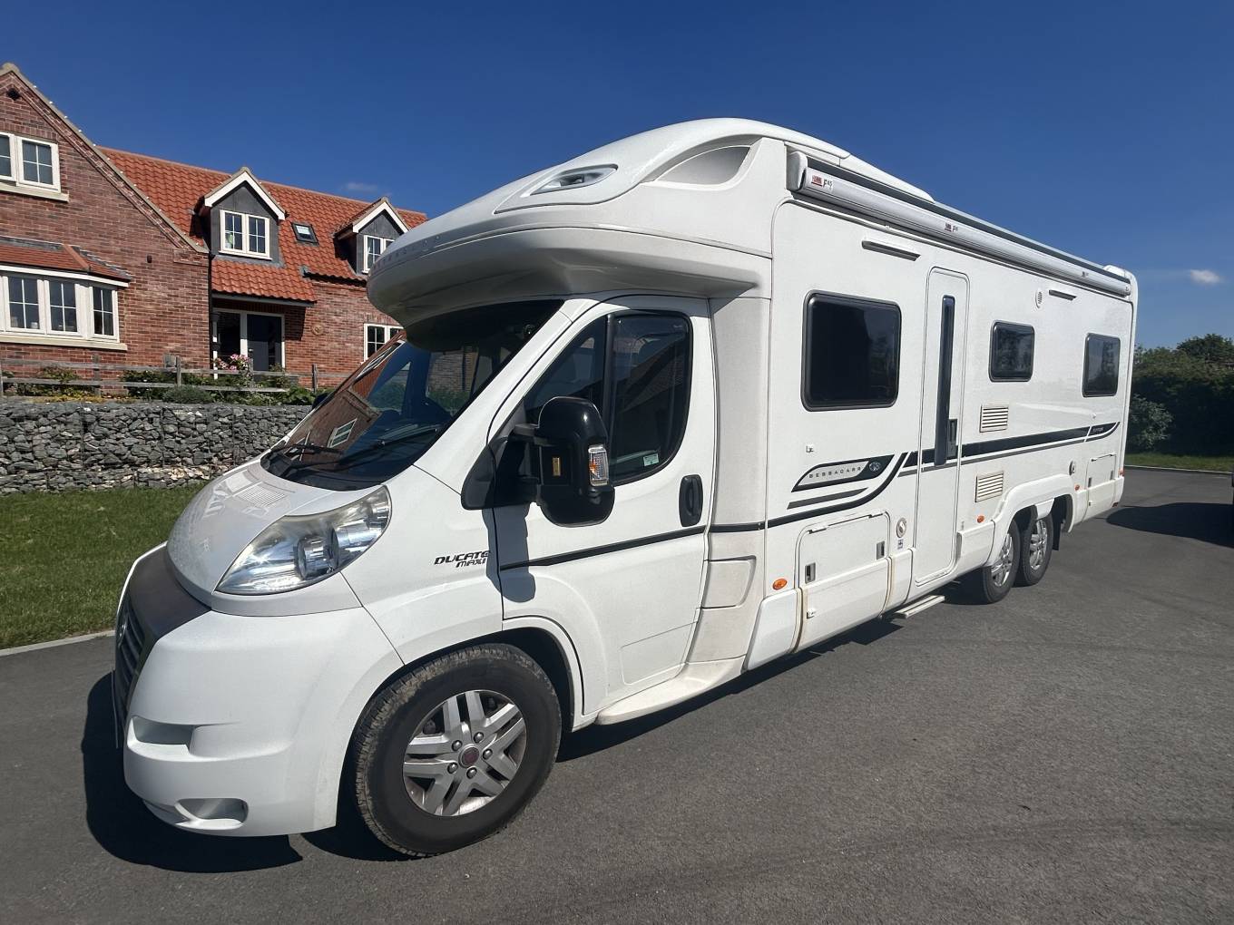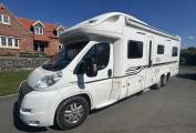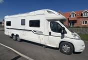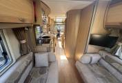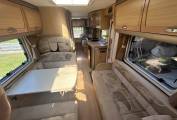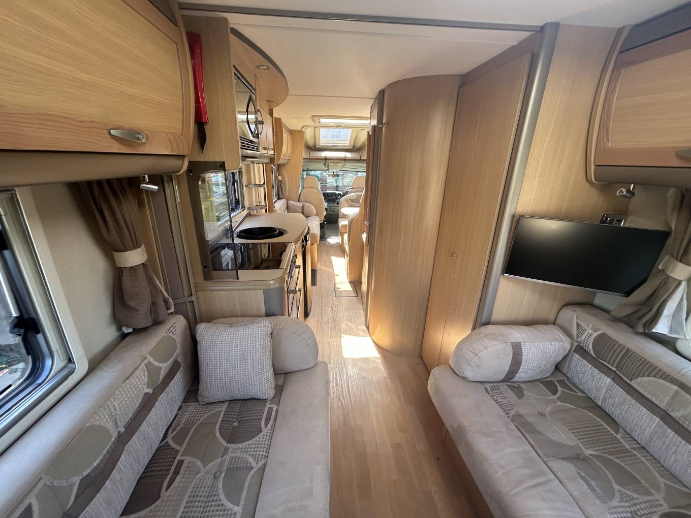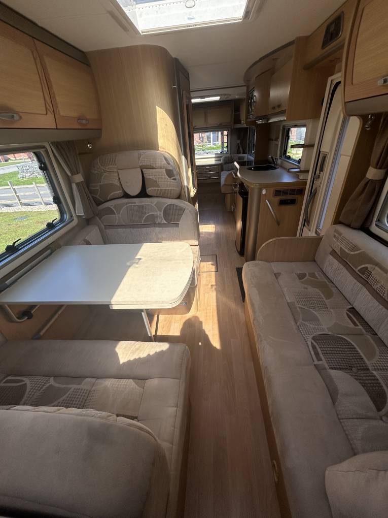 Here we have the perfect motorhome for a family of 4 to have the adventure of a lifetime, having two living areas makes it so much easier to enjoy family time together and still have plenty of space to feel comfortable, whether your are dining or simply relaxing in the U shaped lounge. The Lounge has 3 large windows, perfect for taking in the views from all directions. The cab offers, reverse camera, Cruise control, air conditioning and built in blinds, both front seats are captain seats, The large central dining area has two forward facing seats with seat belts, two back facing and a large side bench, more than enough room for family and visitors. The drop down TV for entertainment for the front and a TV in the rear , the table can be removed and again there are two large windows so you can enjoy the view. The wall units and the seats have more storage than you could wish for to keep all your belongings tidy and out of site. You can cook up a feast in the spacious kitchen with plenty of worktop space, full oven, grill and gas/electric hob, sink and mixer tap, microwave and extractor fan, the 3 way fridge will keep your food fresh for when its needed there is plenty of storage for dried food so don't hold back on the menu. The wash room has a separate shower cubicle so you can freshen up after a day of exciting adventure, it has a cassette toilet, mirror, sink with mixer tap, vanity unit to keep things safe and tidy. The Truma supplies the heating and hot water, and the two gas bottles will keep you going whilst off grid. Even on the outside there is plenty of access to storage, there is a large wind out canopy so you can enjoy and create a great living area outdoors. You can even take you bikes on the removeable bike rack which is attached to the tow bar. The ladder gives you access to the roof, Also it has a full set of carpets, ramps and cables, so you are set to go. This motorhome is 5000kg so please make sure you have C1 on your license.