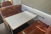 As mentioned the interior has been renovated to give it contemporary feel, here are some lovely touches throughout the motorhome including bright cupboards, a new 20mm Quartz kitchen work top and a sauna style wash room. The living area also benefits from habitation air conditioning, operating on electric hook-up, keeping you lovely a cool in the summer months.
