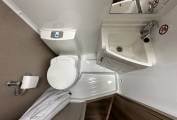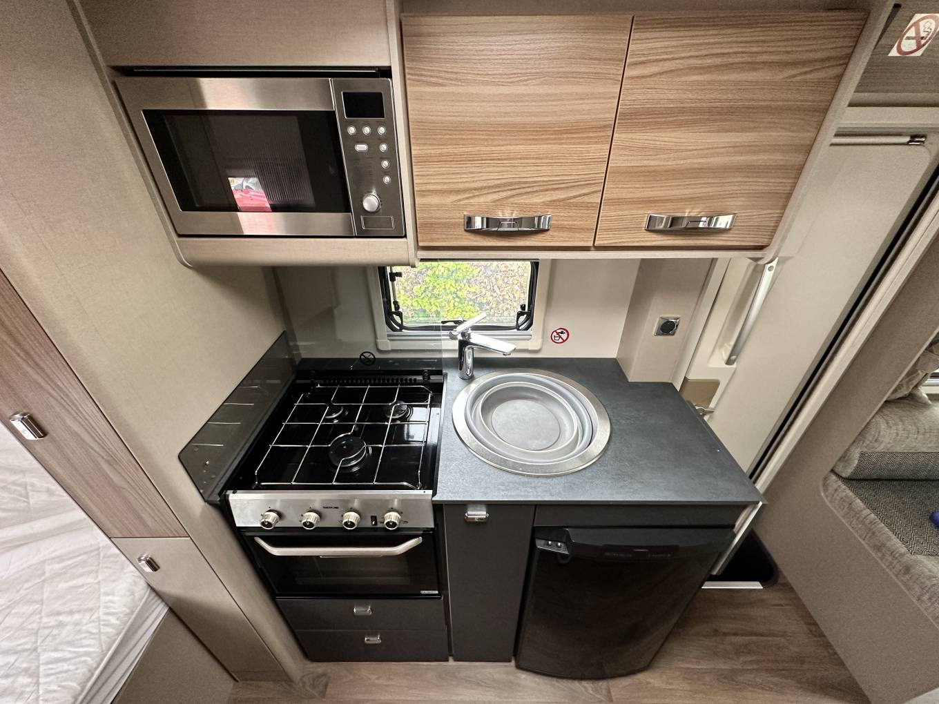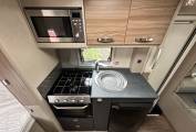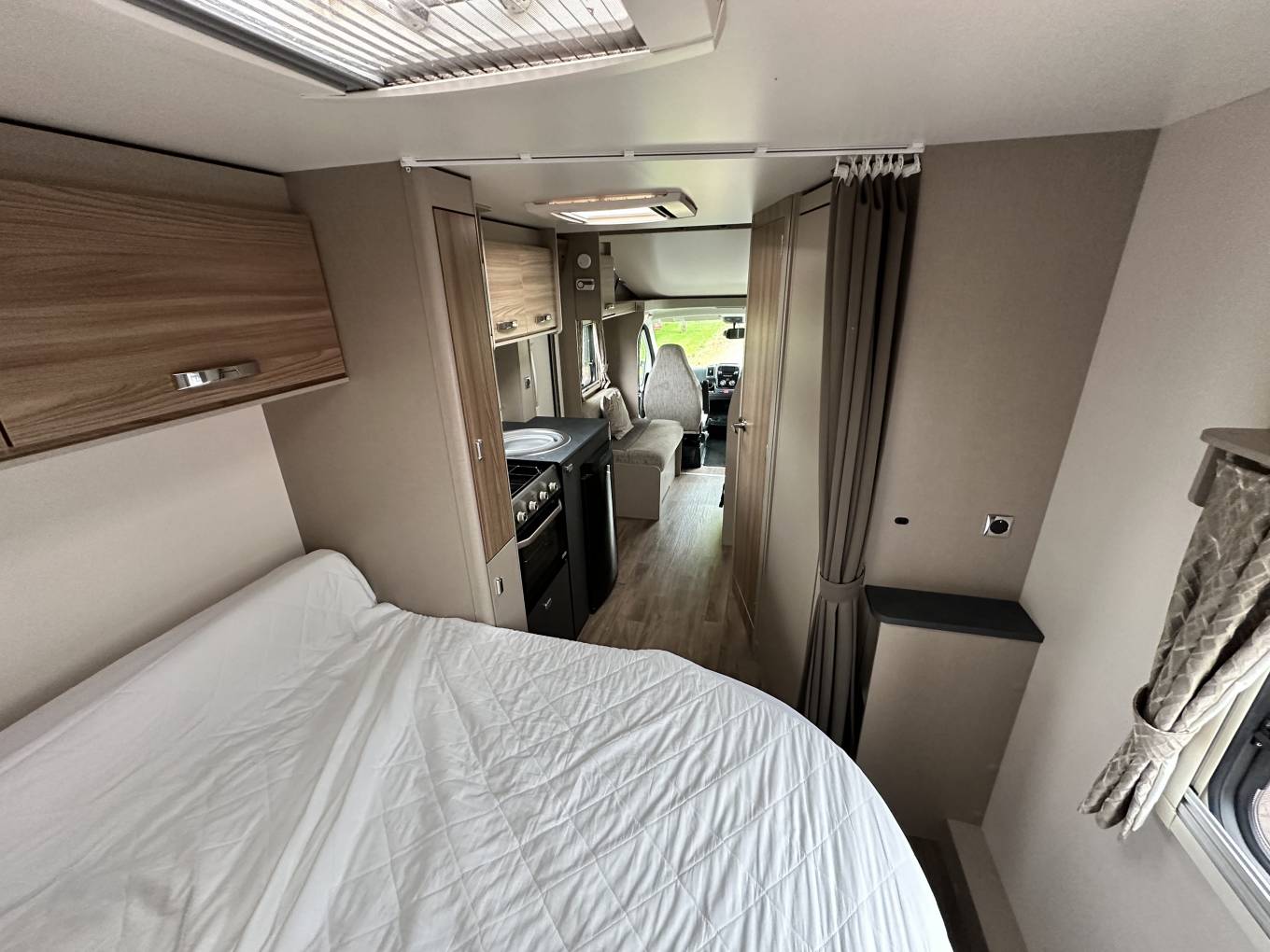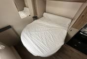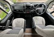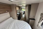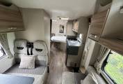To the rear you will find the desirable fixed rear island bed which comfortably sleeps 2. There is ample storage including two wardrobes either side of the bed, overhead and under bed storage which can be accessed inside or outside of the motorhome. Moving forward, you will find the well equipped kitchen including sink with mixer tap, 3 burner gas hob, oven, microwave and 3 way fridge. Adjacent, is the practical washroom with wash basin, casette toilet, shower and vanity storage. At the front of the motorhome, is the dinette area with swivel seats and side bench providing generous seating for all the family. There is a comfortable drop down, double, cover cab bed which completes this 4 berth motorhome.