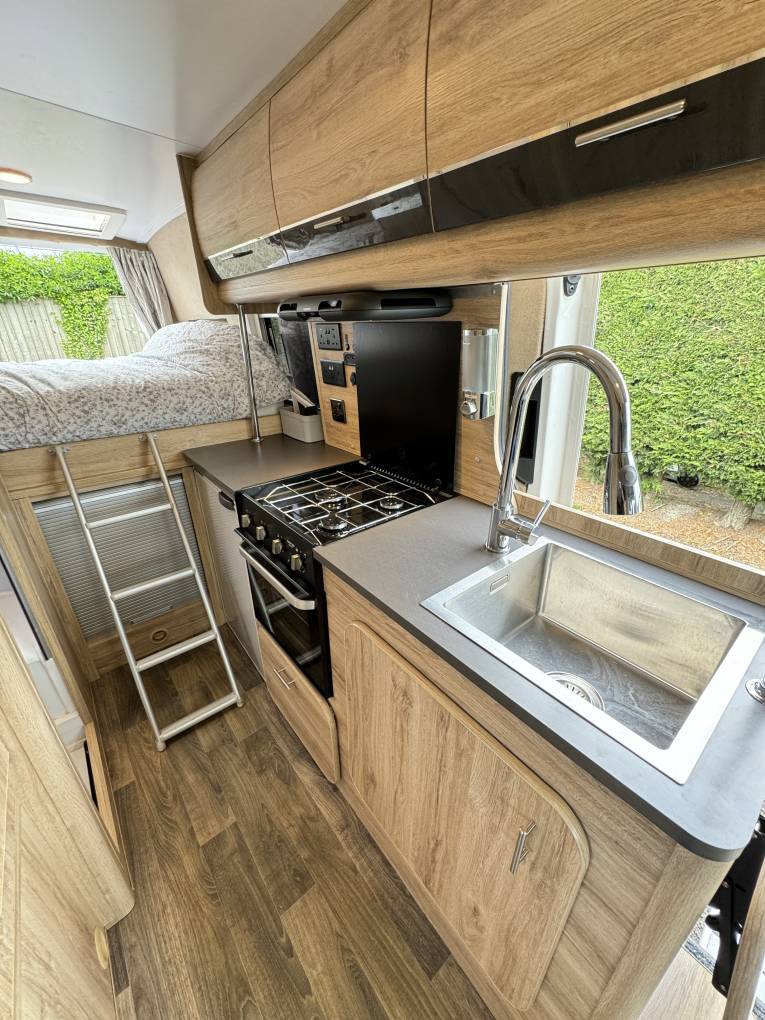 van we have the kitchen area with 3 ring gas hob and oven/grill, large sink