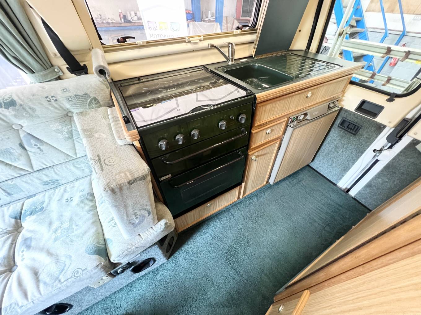 Kitchen - Hob with 3x gas rings 1x electric ring– Sink – Oven - Grill –Fridge with freezer compartment which operates on gas or electric – additional pull out worktop space, also has the great benefit of having diesel heating.