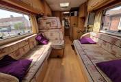 The large lounge dinette converts to a large double or 2 quickly assembled singles with the overhead cab providing a further double.
