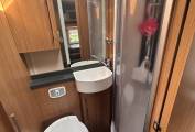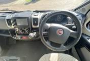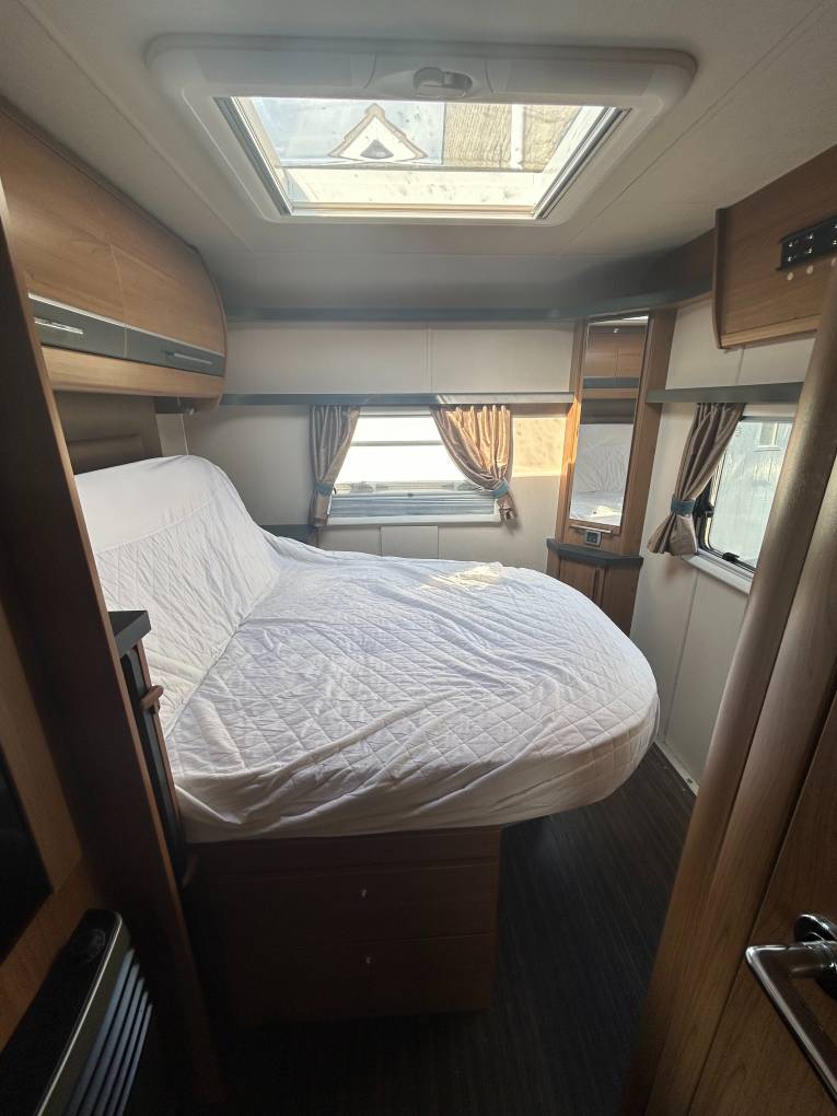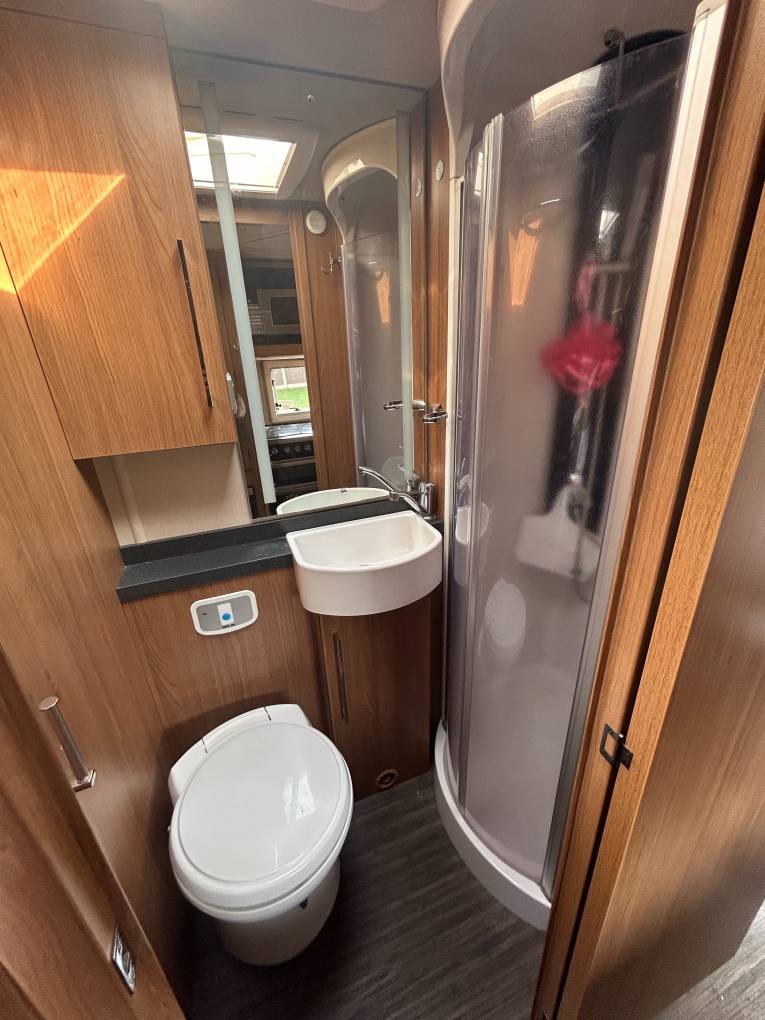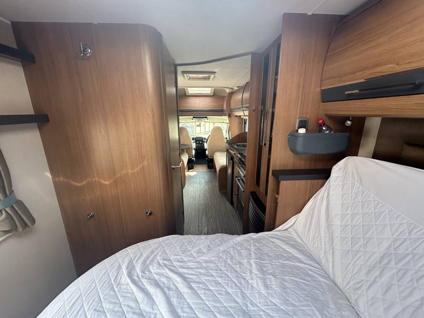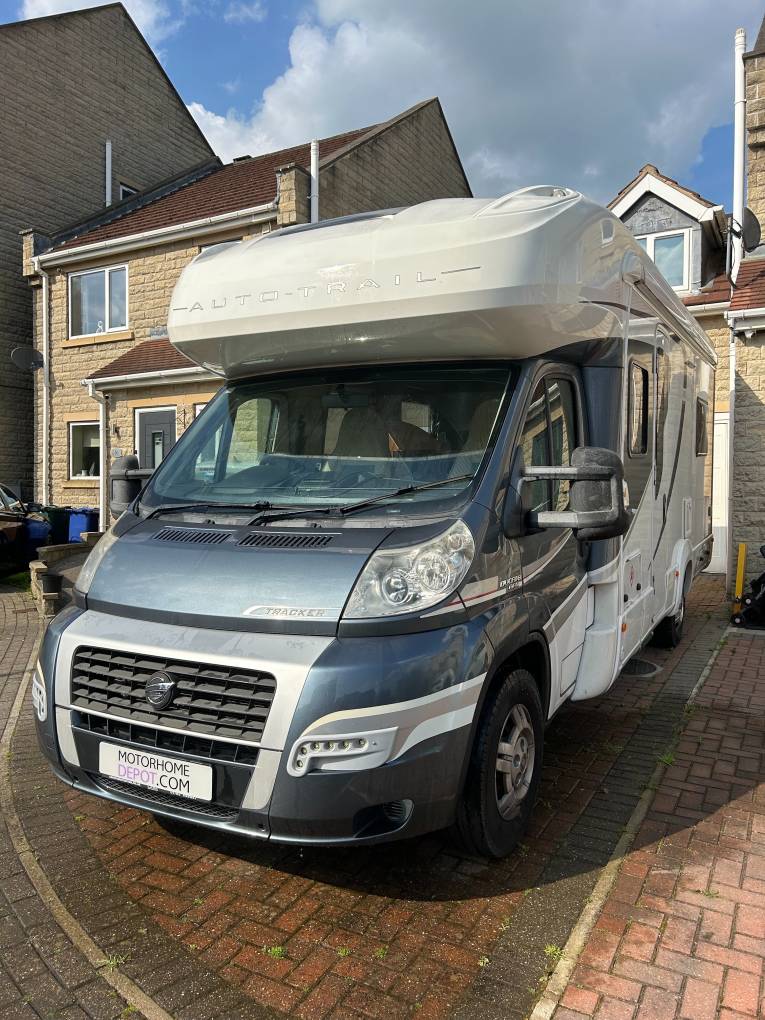 Here we have a Autotrail Tracker RB, 4 berth with 2 seatbelts, fixed transversal island bed on a 6 speed fiat 2287 engine, with 27500 miles on the clock. this layout is perfect for a two, to have the adventure of a lifetime. This motorhome comes with a solar panel to help you keep topped up with power whilst on your trip. It has electric windows, Electric wing mirrors, reversing camera, cruise control and air con. The cab area has built in blinds so it’s really easy and convenient and easy to stay private. Both cab seats also turn to the central dinning area where you can enjoy family time whether it is having a meal, entertaining your family or simply watching the built in TV. The adjustable and removal table give you plenty of room to dine and entertain guests in the evening, maybe cook up a fine meal in the kitchen which has everything that you will need, with a full oven and grill, a built in microwave and a full 3 way fridge and freezer, electric ceiling fan, this motorhome also comes with a Truma heating system for those colder days. It has a full set of carpets that have never been used. The dining area seating converts into your first double bed and the rear bedroom has a fixed transversal bed that tilts to a sitting position so you can relax and maybe read or watch TV, there is a blind that can separate the bedroom area giving privacy if required, with loads of storage room below the bed, there is also plenty of storage in the wall cupboards throughout the motorhome and a large wardrobe. The wash room is modern with cubicle shower, mixer taps on the modern sink, cassette toilet, large mirror and vanity unit, perfect to freshen up after a day of adventure. Externally it has a tow bar, large wind out canopy, gas bottle wind out awning, access to plenty of storage space, wet storage drawer, bike rack, external BBQ point and external shower- perfect for washing the sand from your toes after a day at the beach, it also comes with a full set of carpets never used